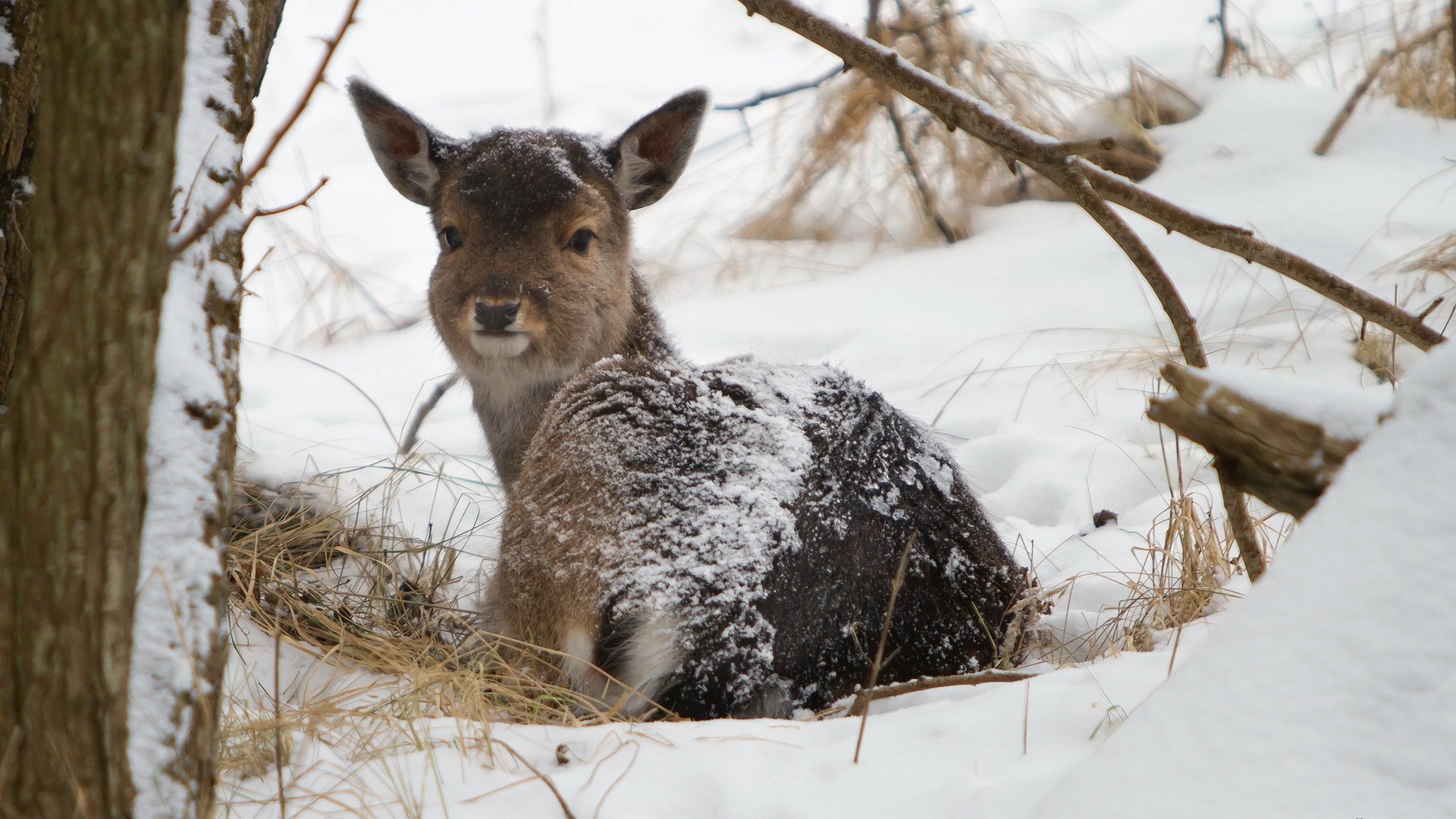 Олень в зимнем лесу