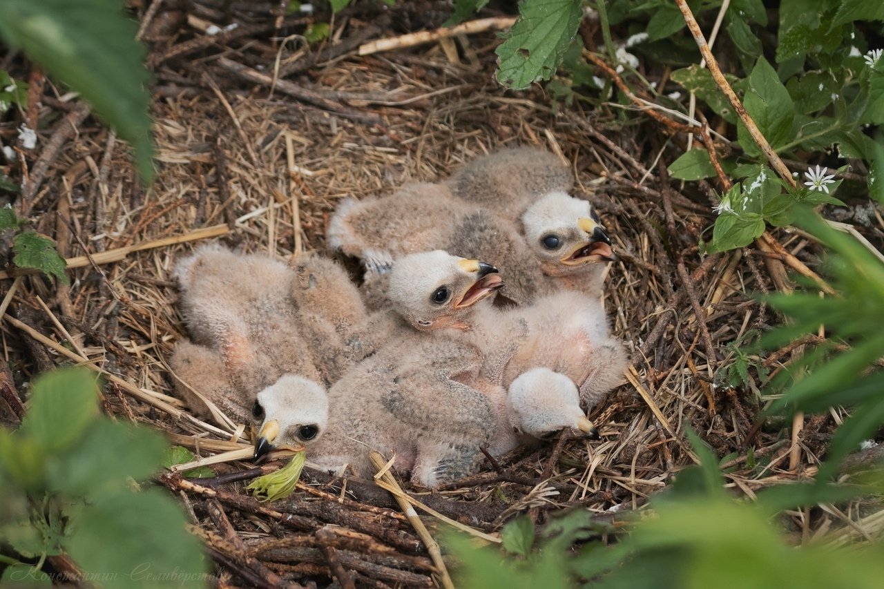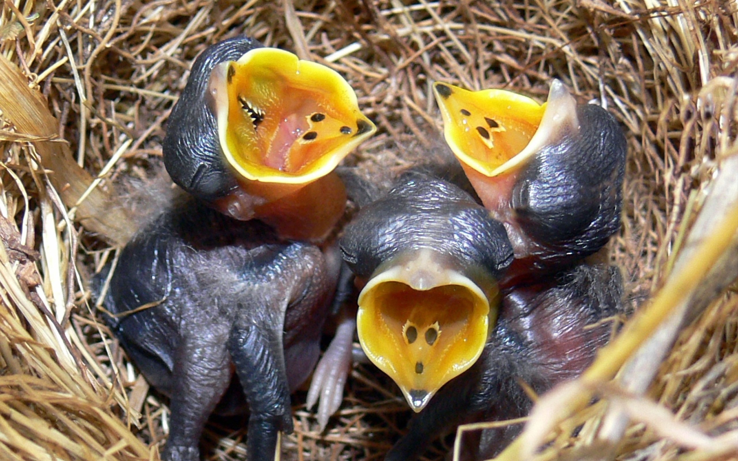 Птенцы с открытыми ртами