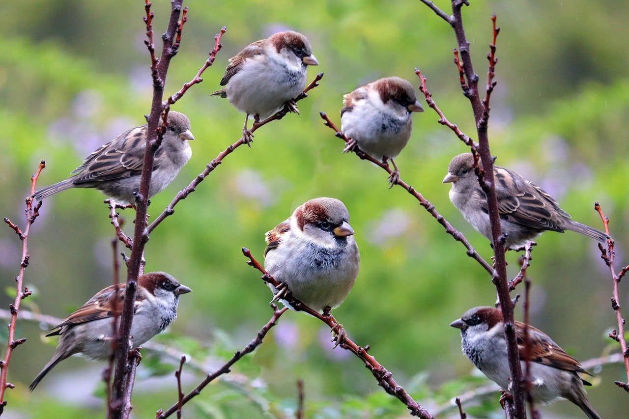 Стайка Воробьев весной