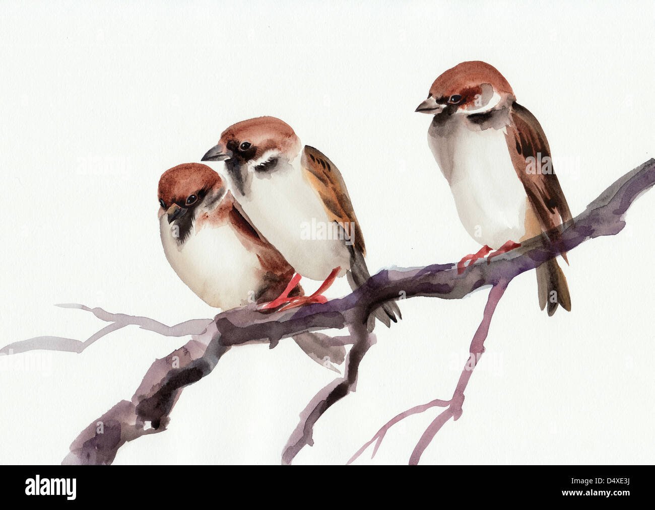 Много птиц акварель