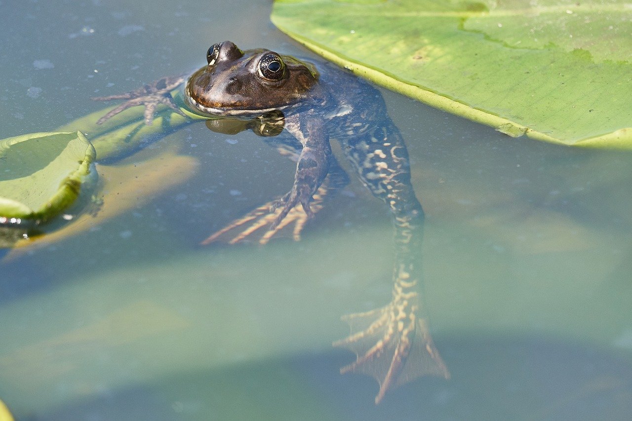 Лягушка плавает в воде