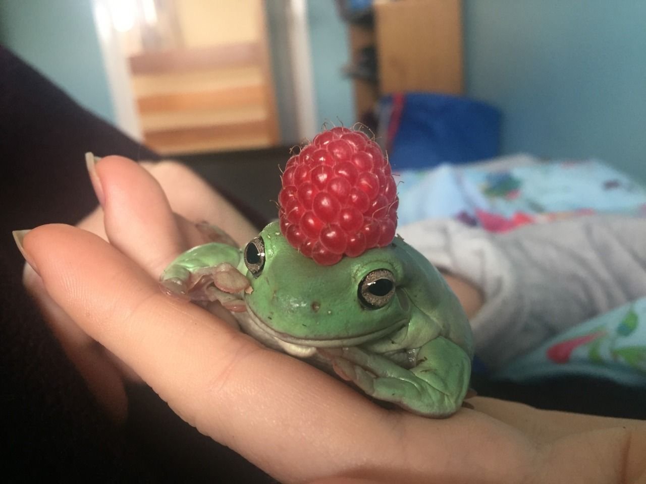 Лягушка с малиной на голове