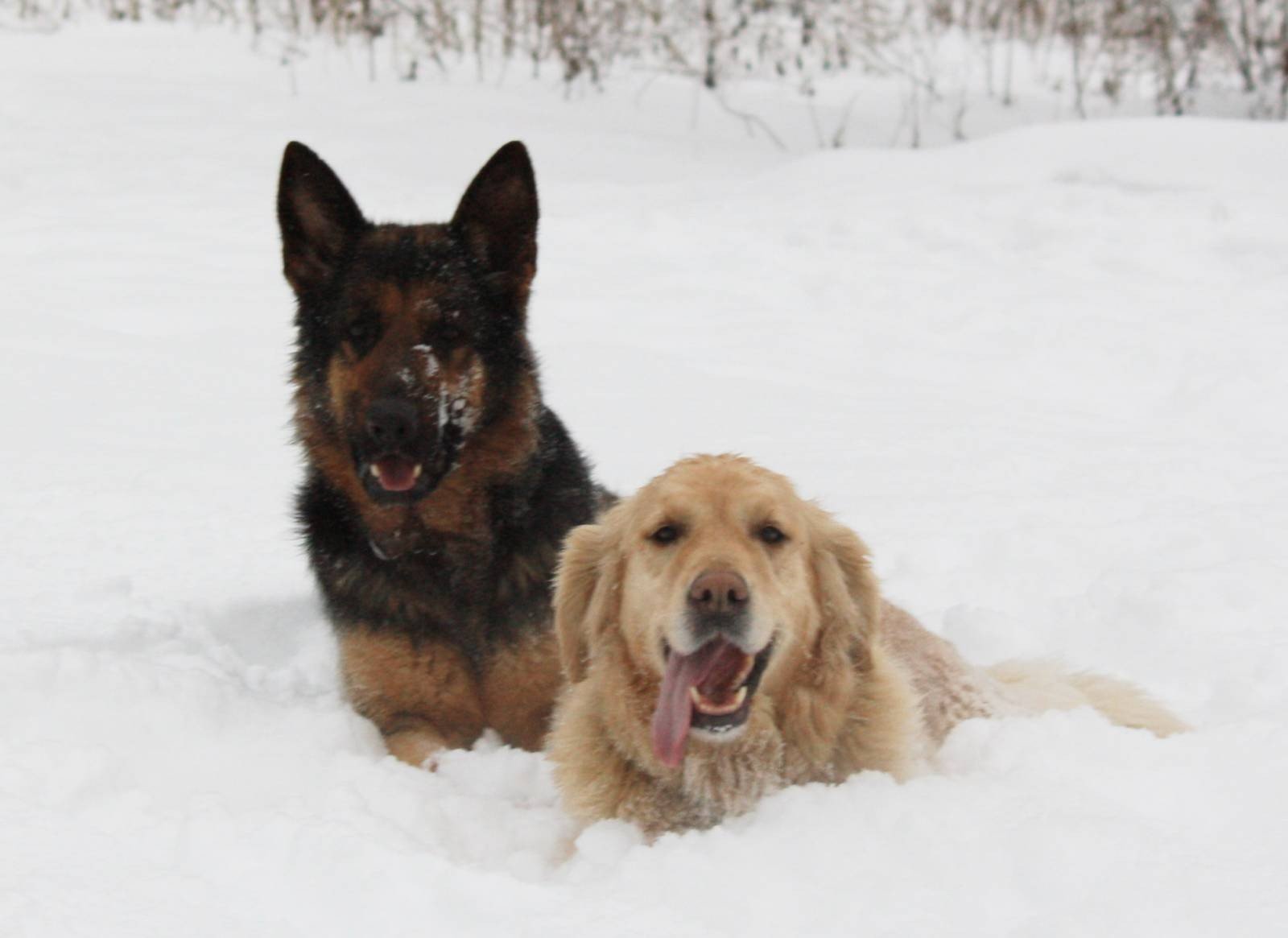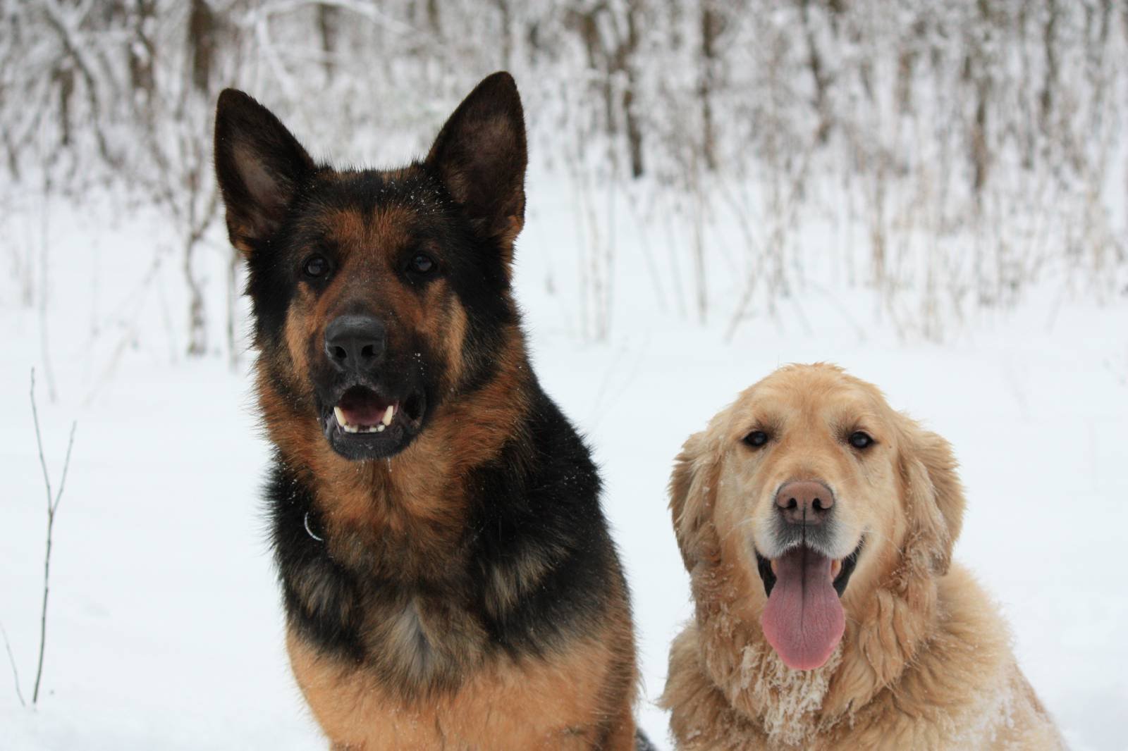 Золотистый ретривер и немецкая овчарка