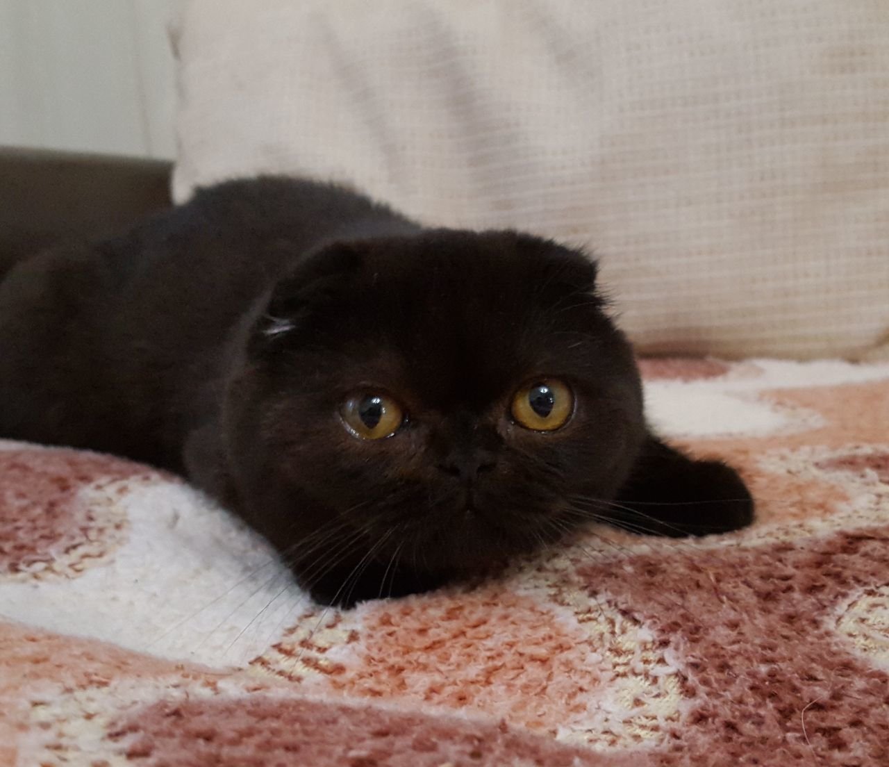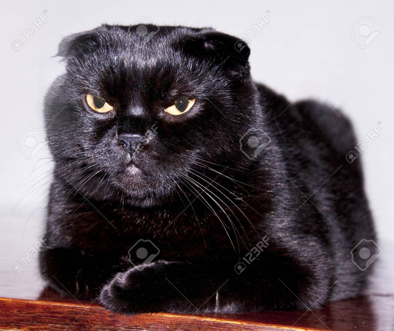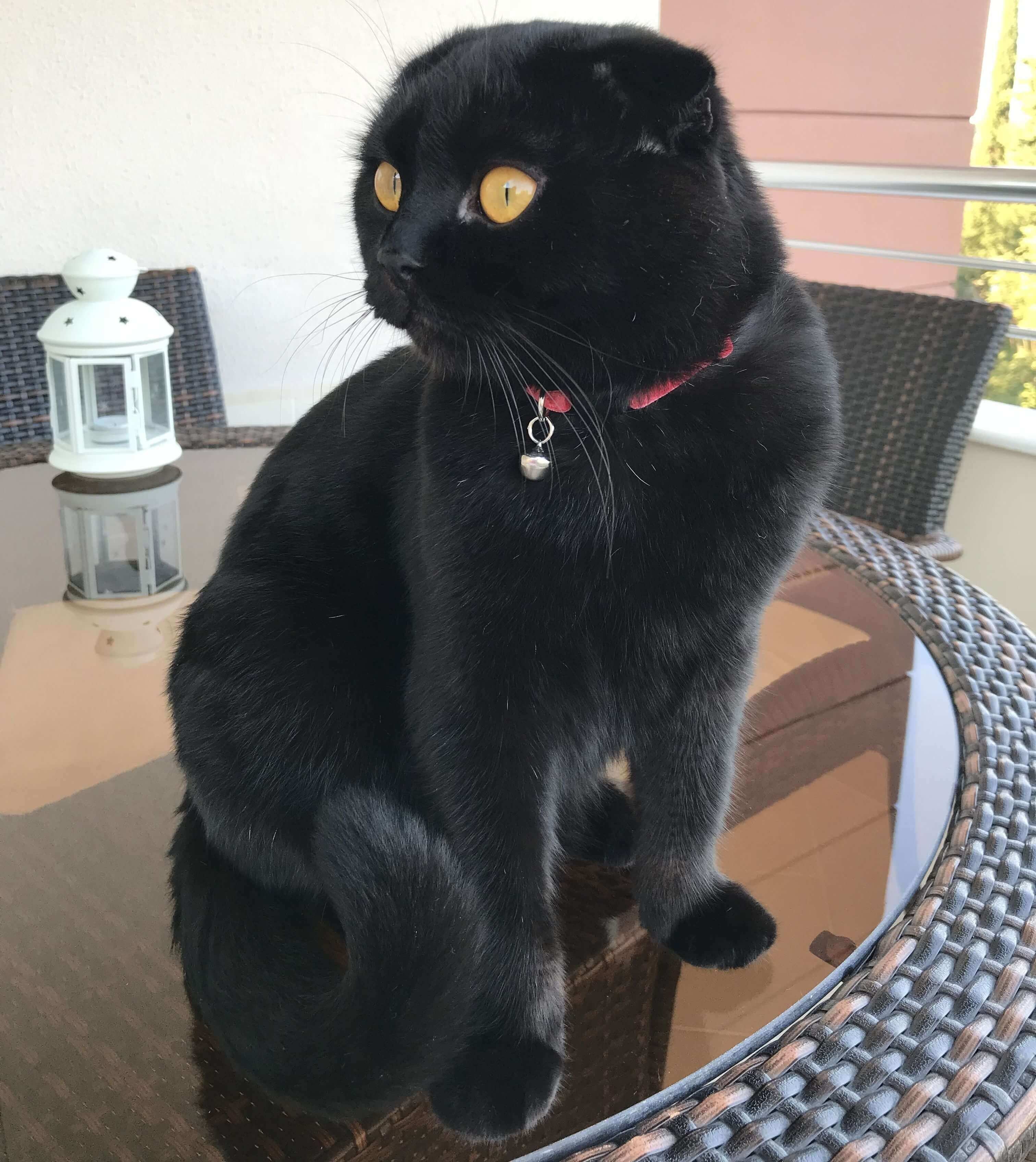 Шотландская вислоухая кошка черная с желтыми глазами