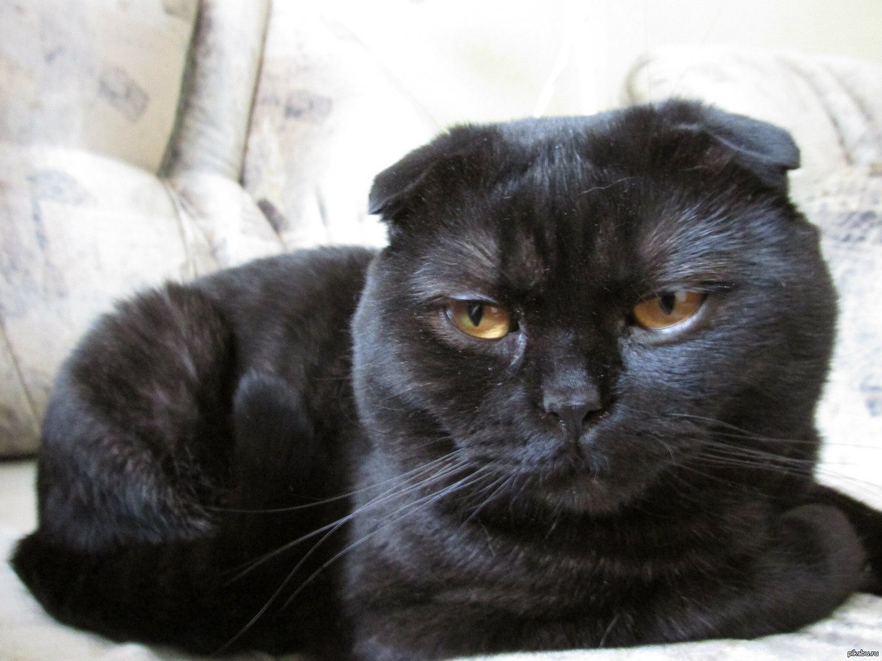 Шотландский вислоухий кот черный толстый