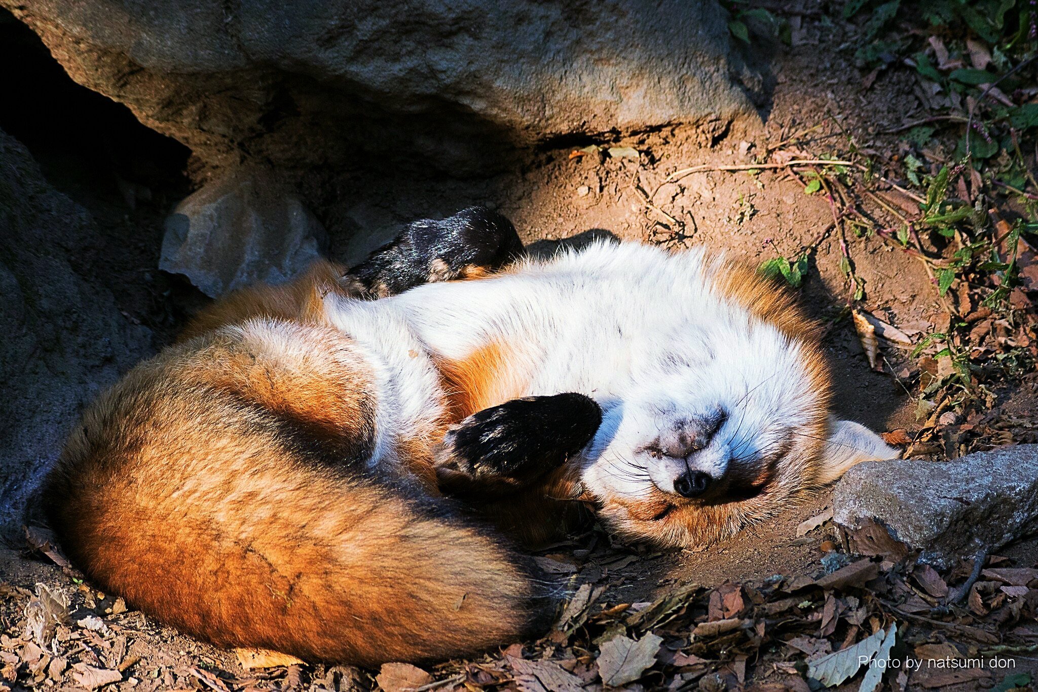 Лисенок лежит на спине