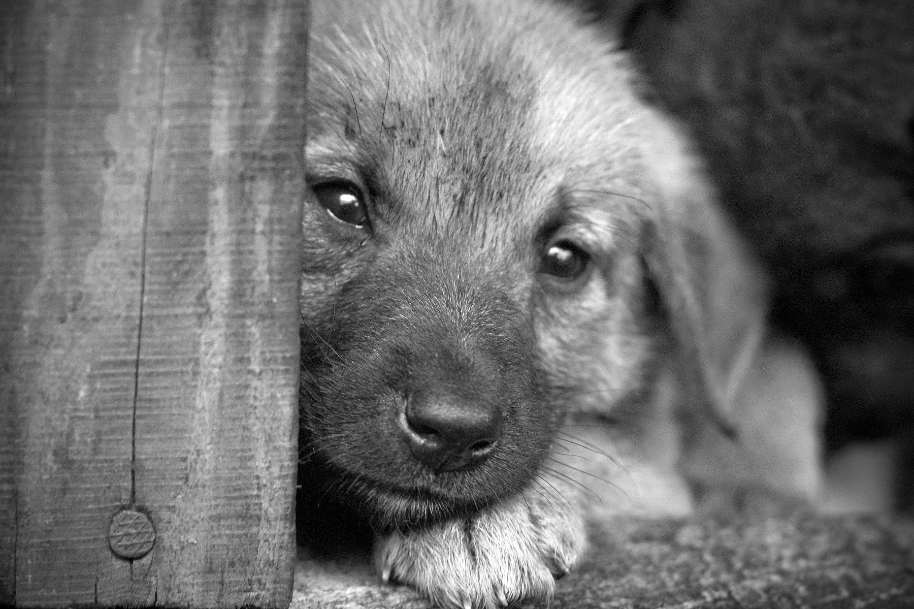 Щенок плачет в приюте