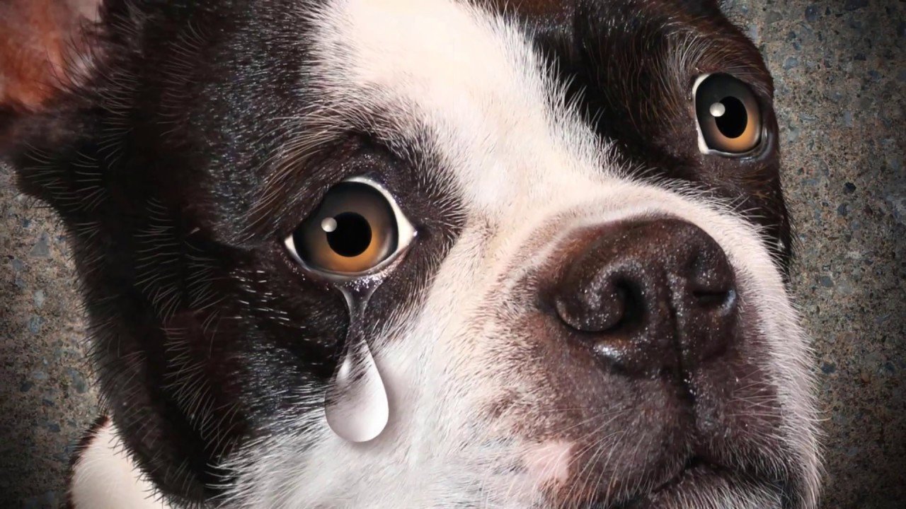 Грустный пес плачет
