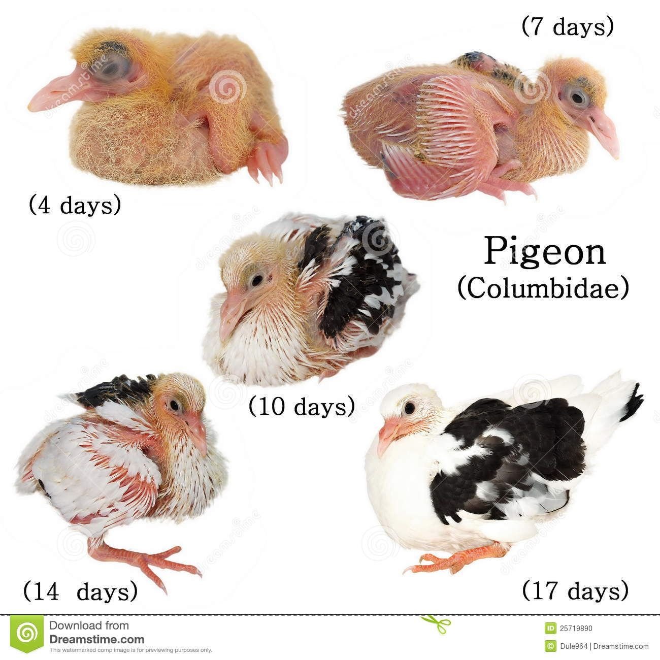 Стадии роста голубя