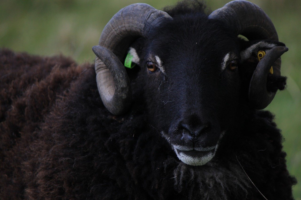 Черная овца с рогами