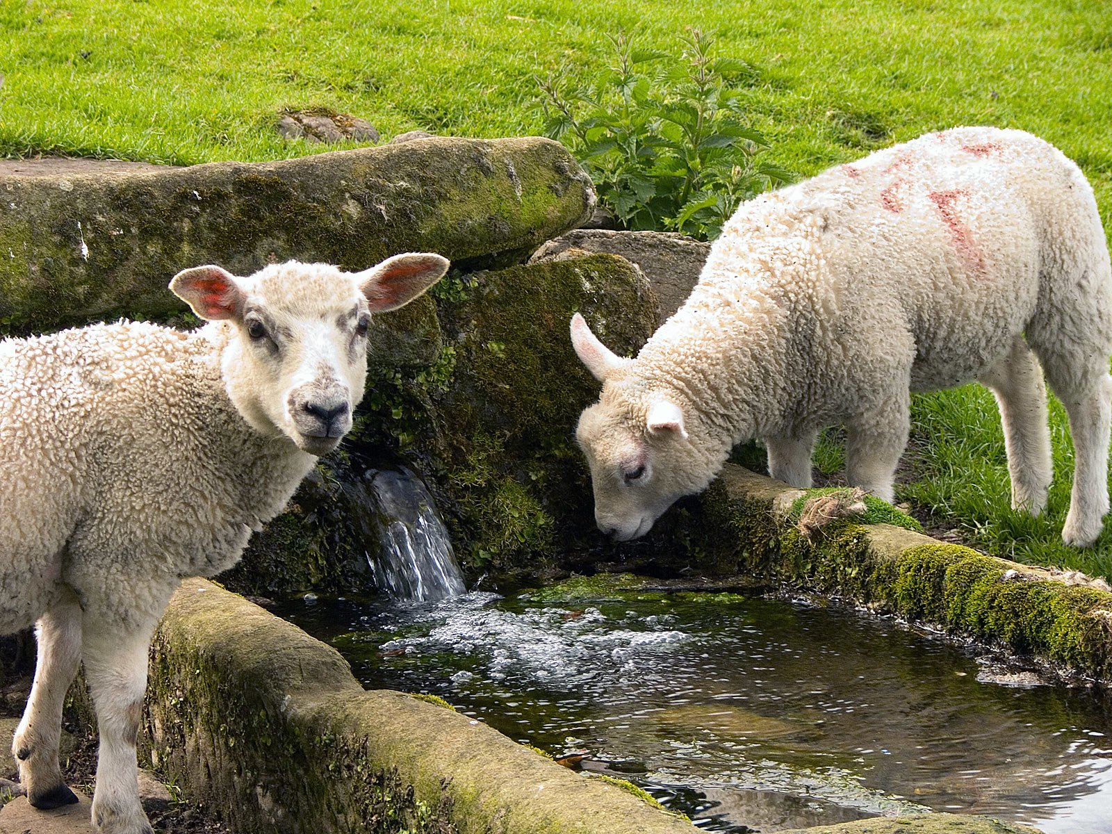 Ягненок пьет воду