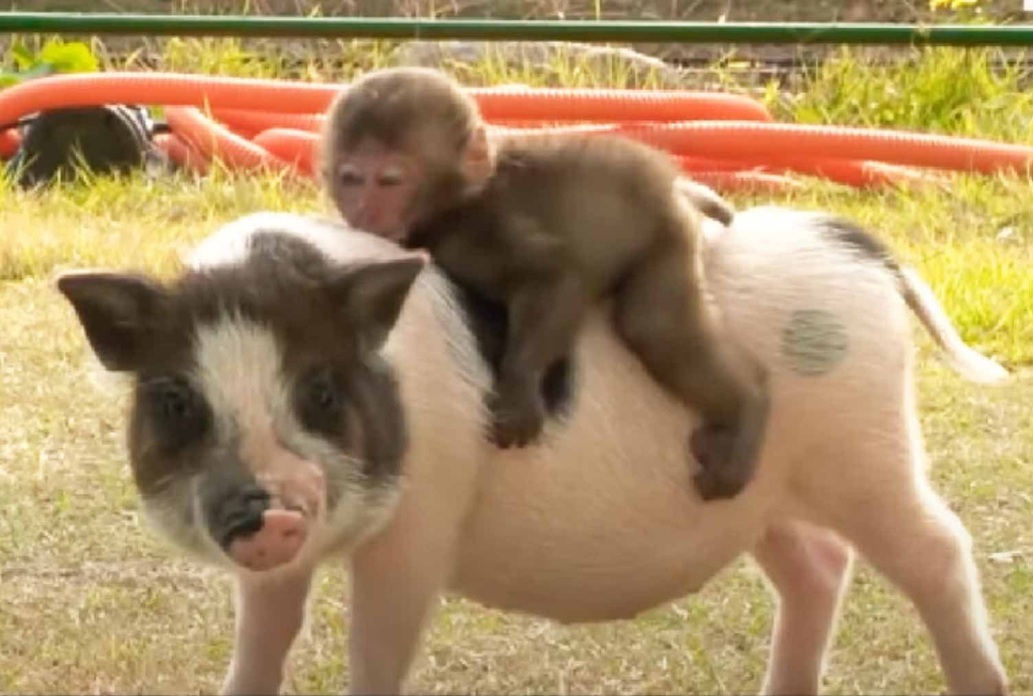 Обезьяны катаются на кабане