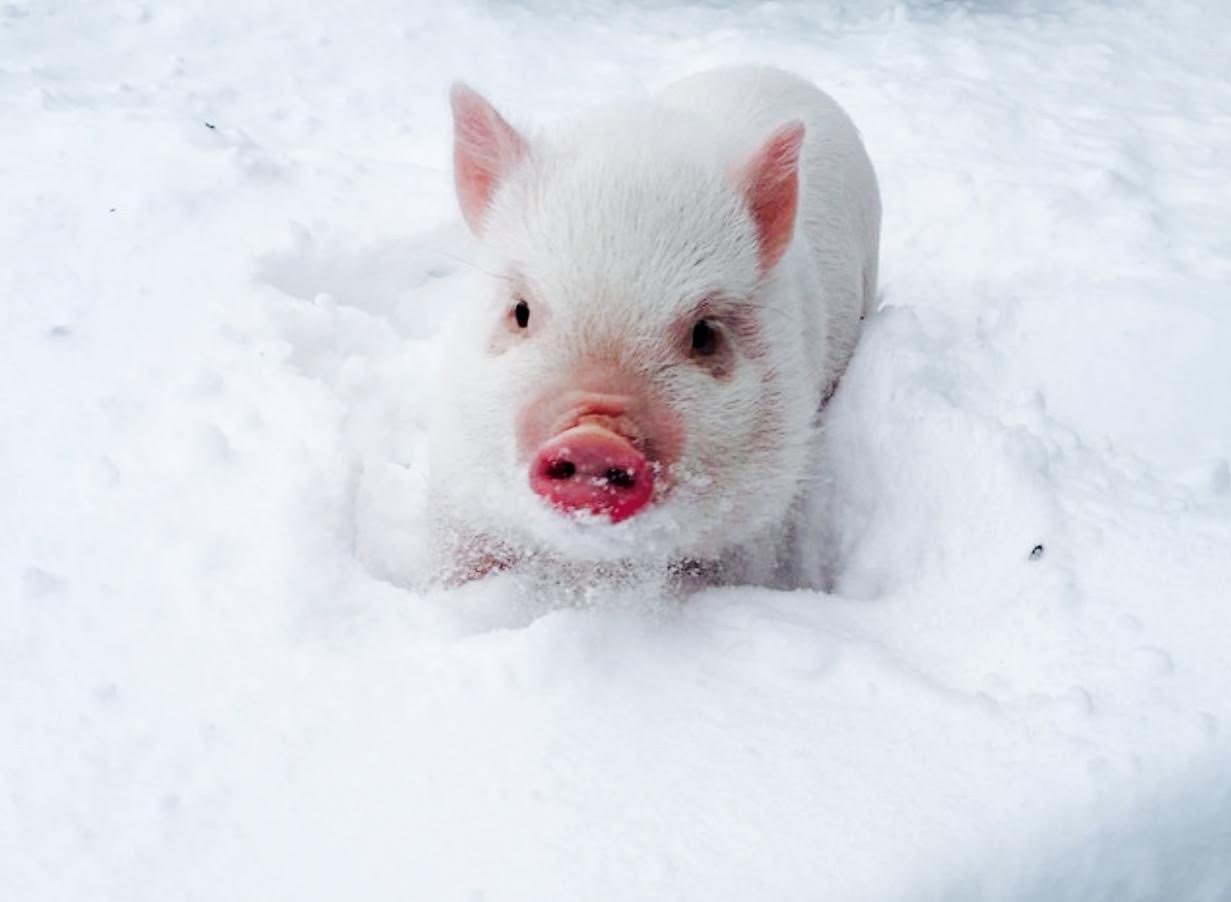 Свинья зимой