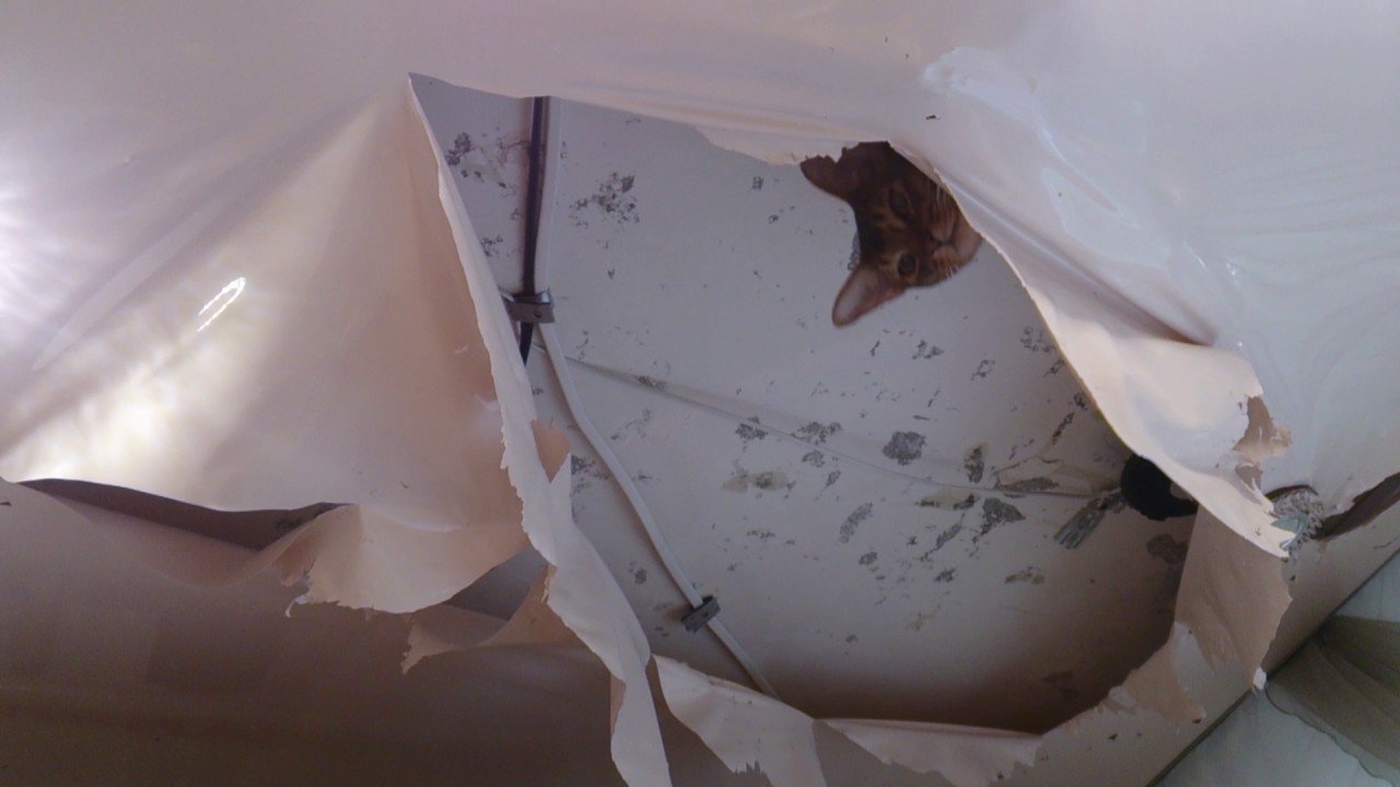Кот прогрыз натяжной потолок