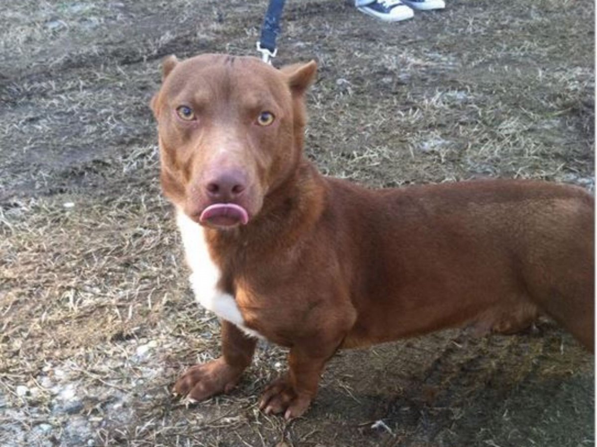 Стаффордширский терьер и такса помесь
