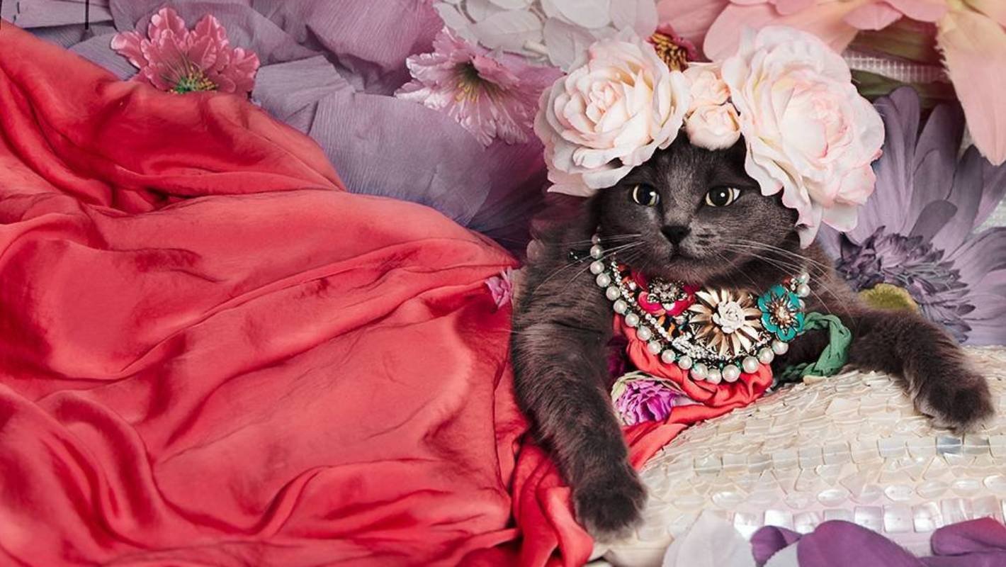 Кошка в красивом платье