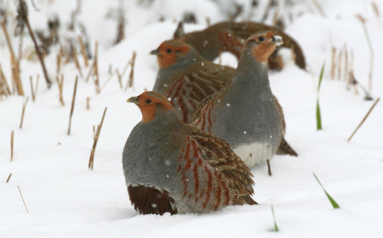 Серая куропатка зимой в Зауралье