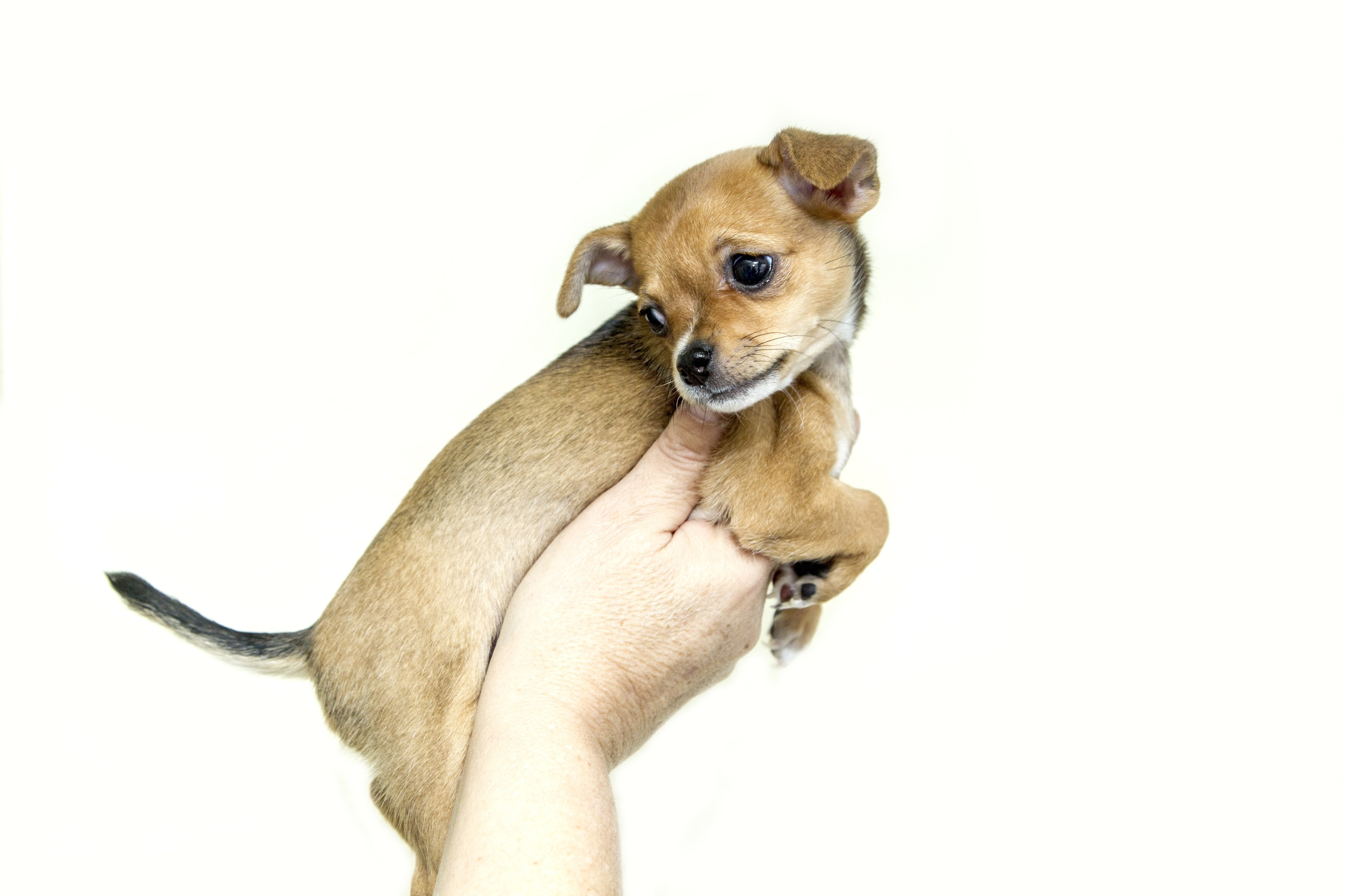 Фото собаки чихуахуа короткошерстной белый на белом фоне