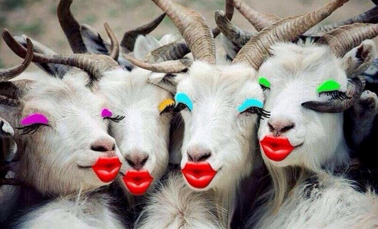 Коза с накрашенными губами