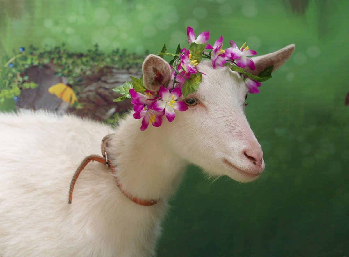 Коза в цветах