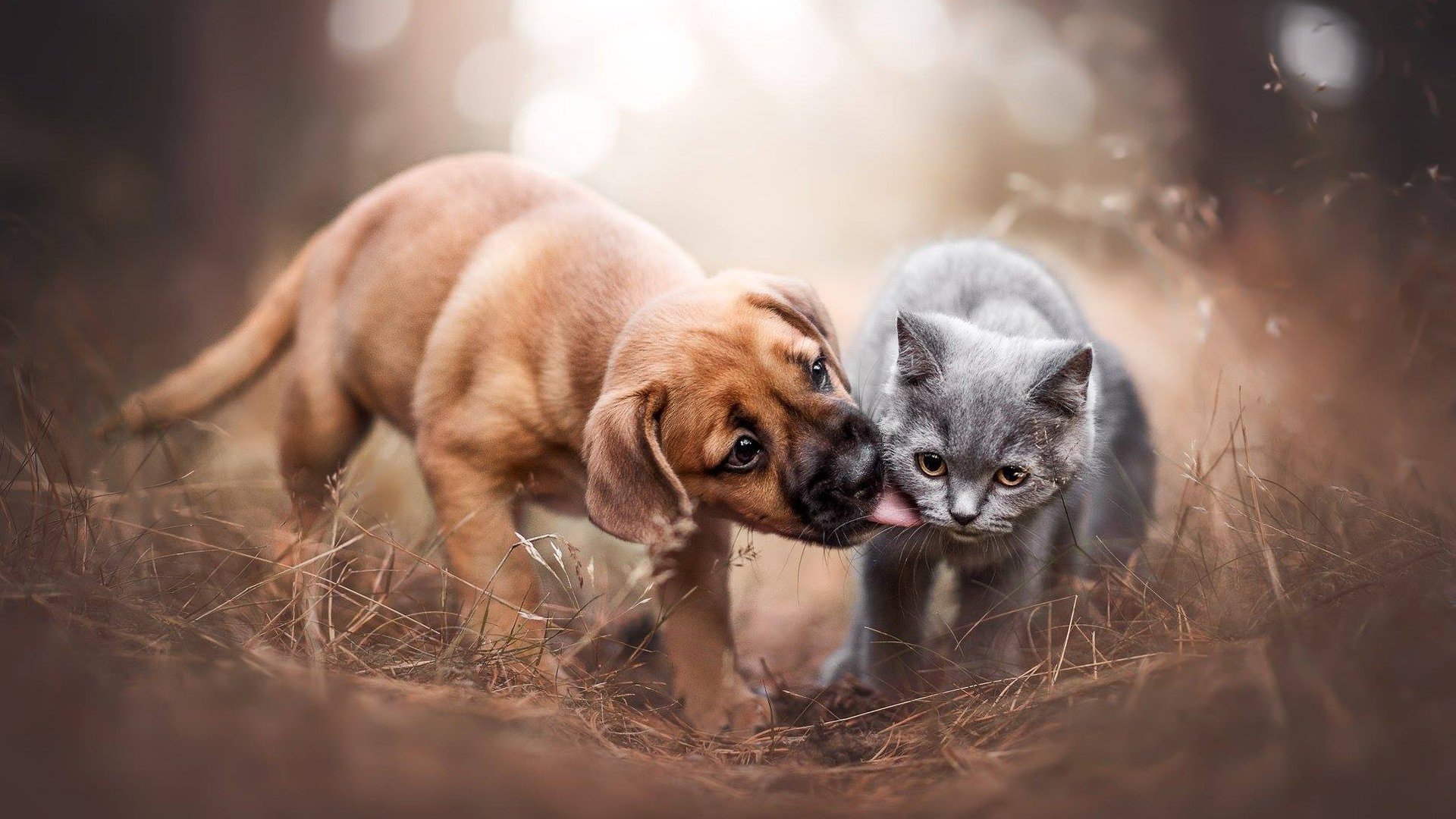 Щенок и котенок