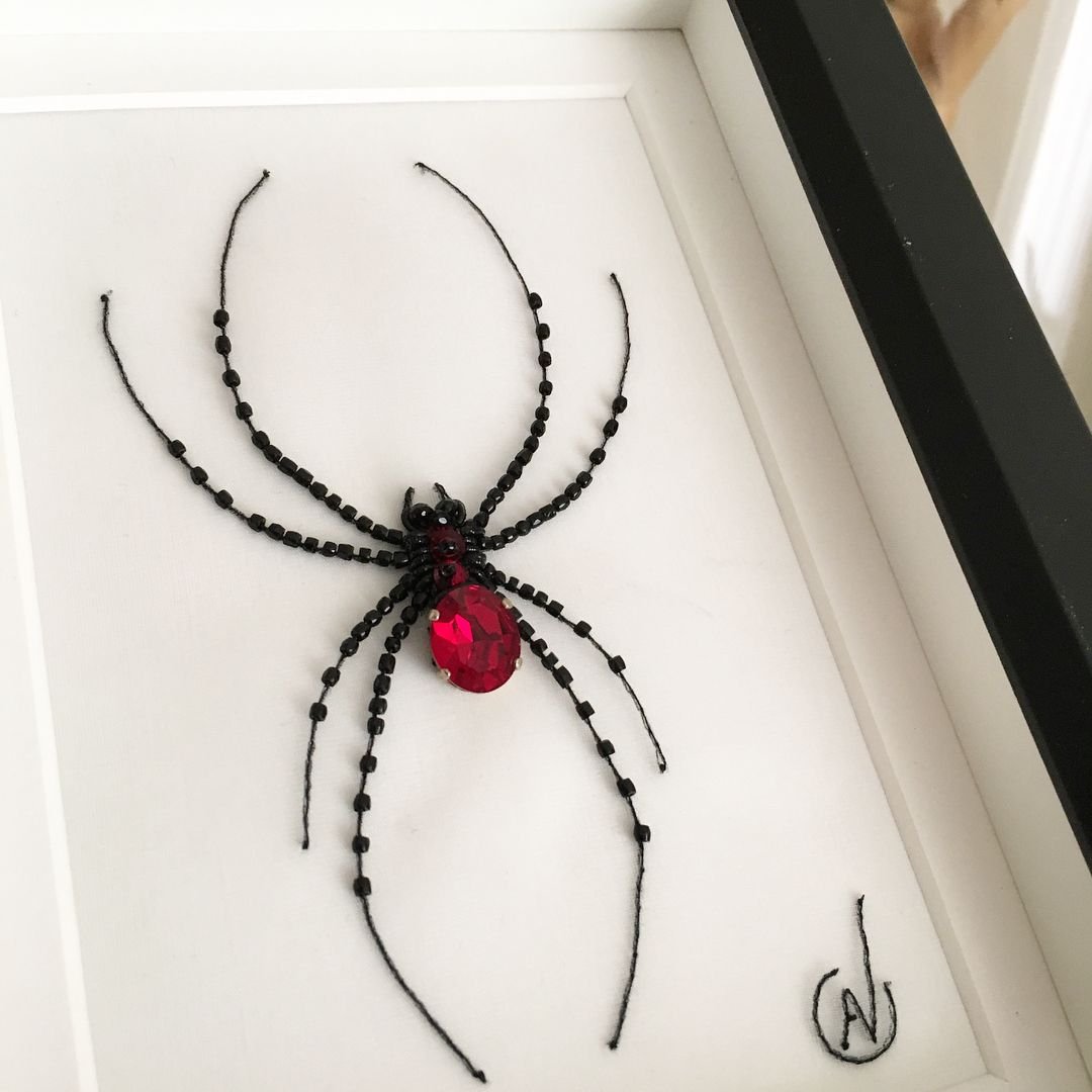 Паук брошка из бисера
