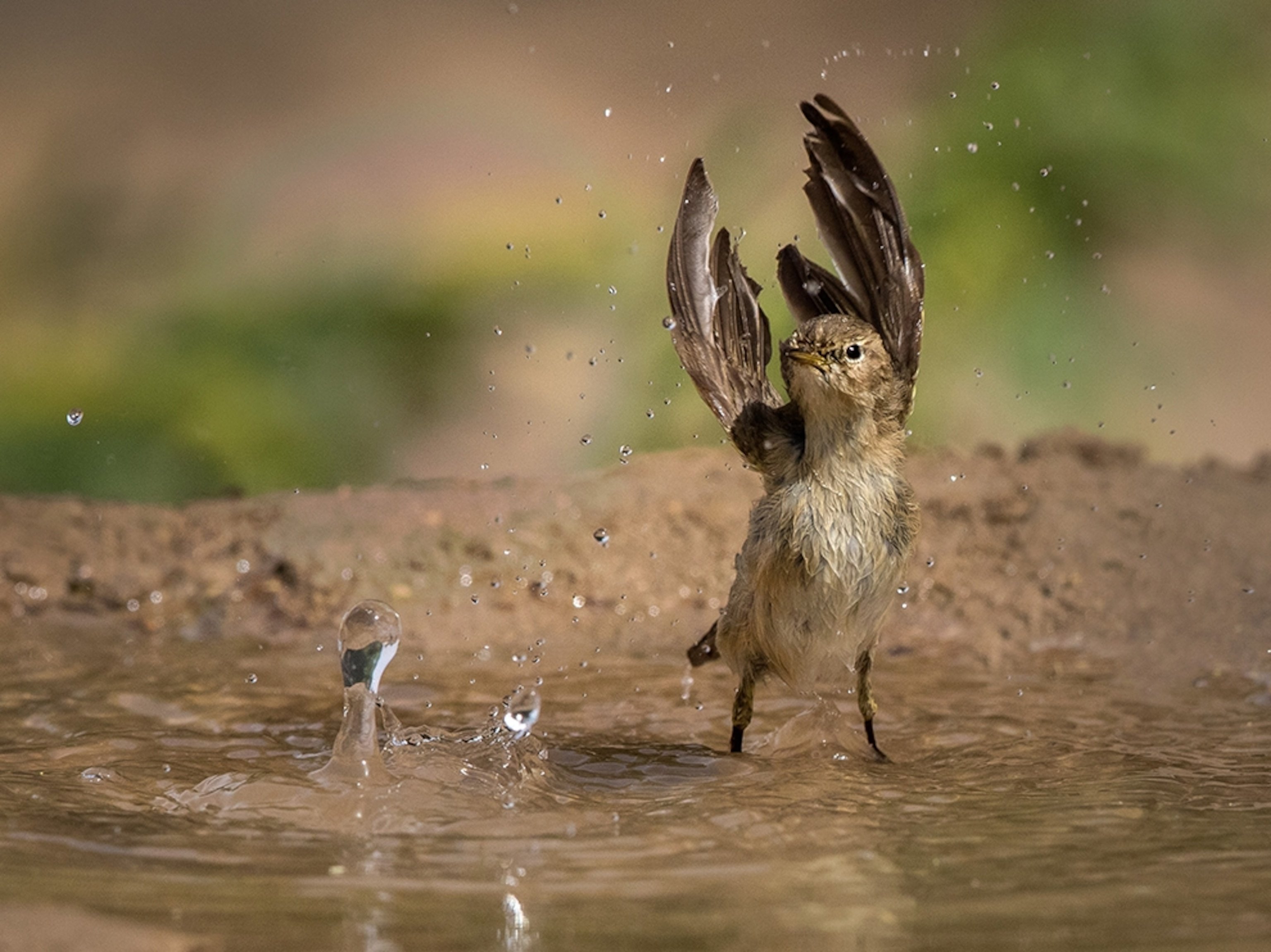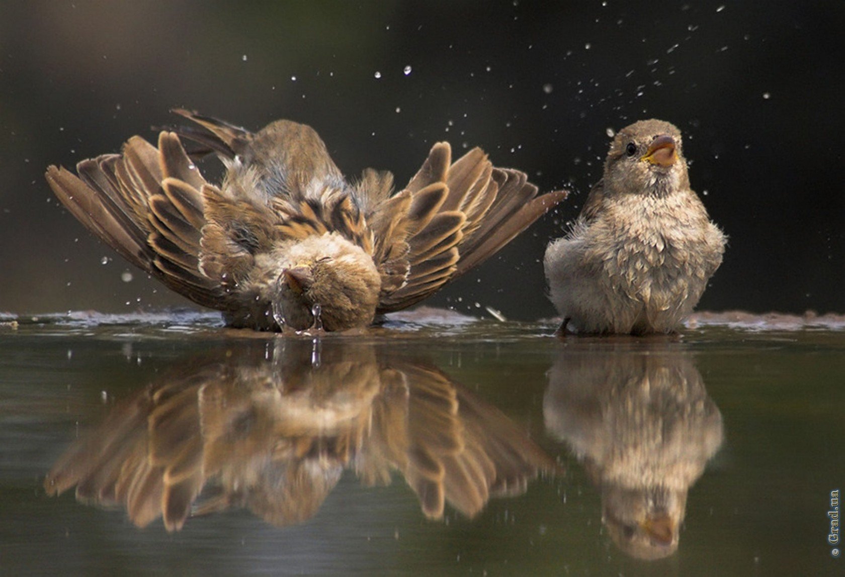 Птичка купается в луже