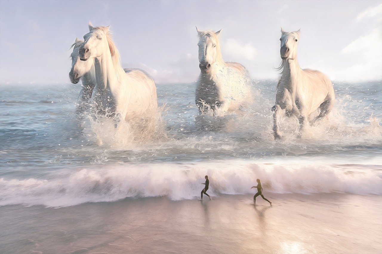 Лошади в океане рисунок