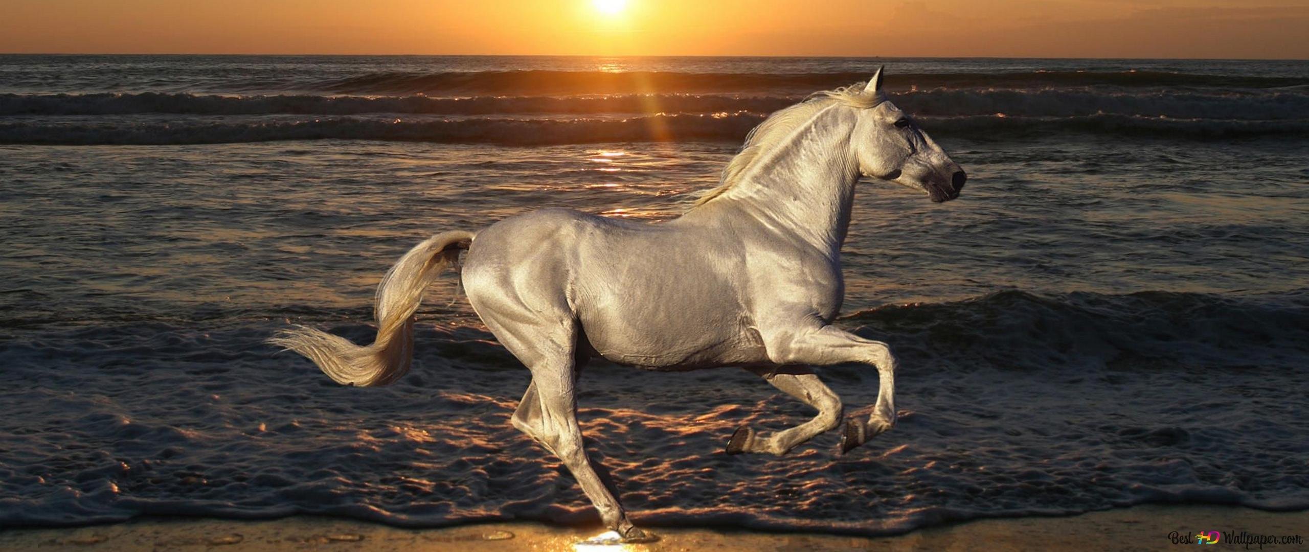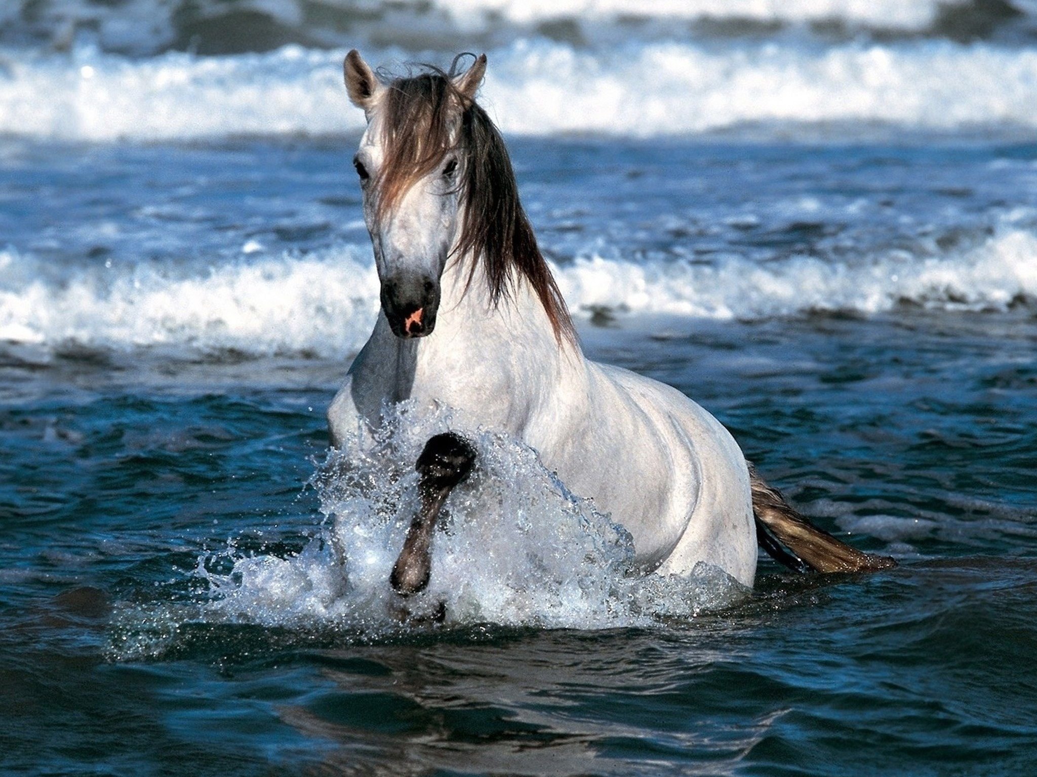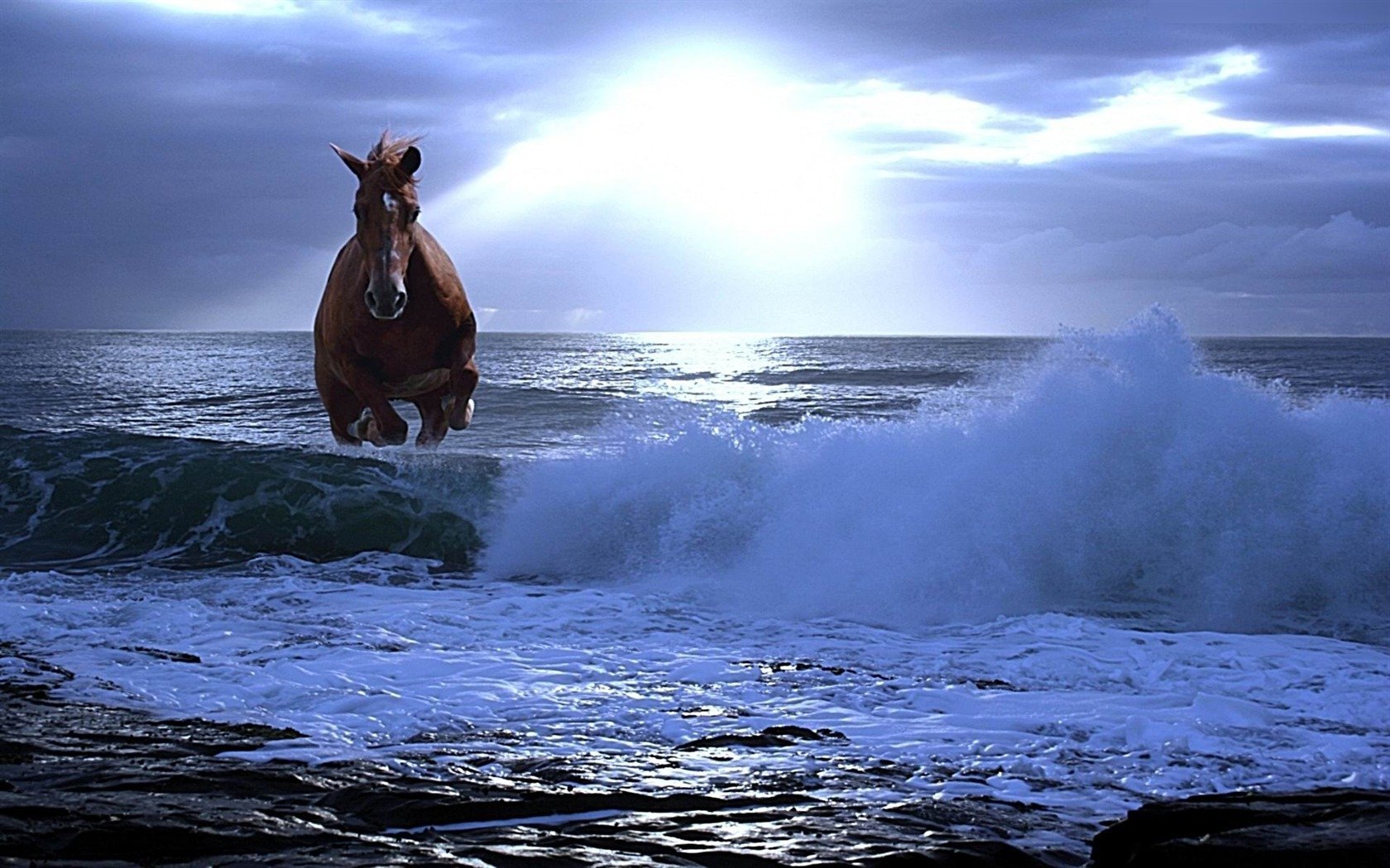 Лошадь бежит по морю