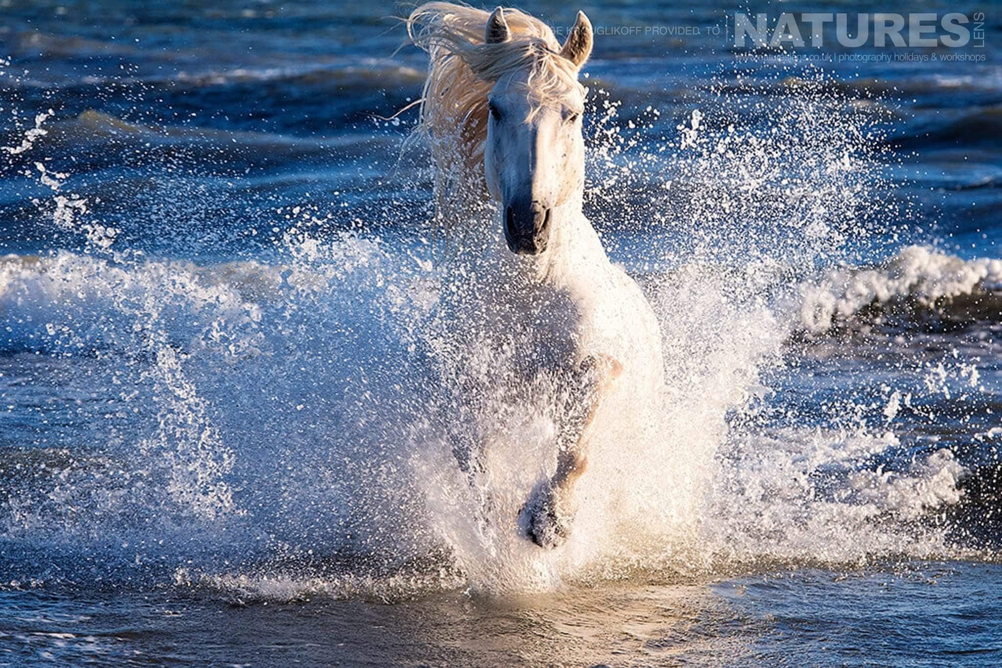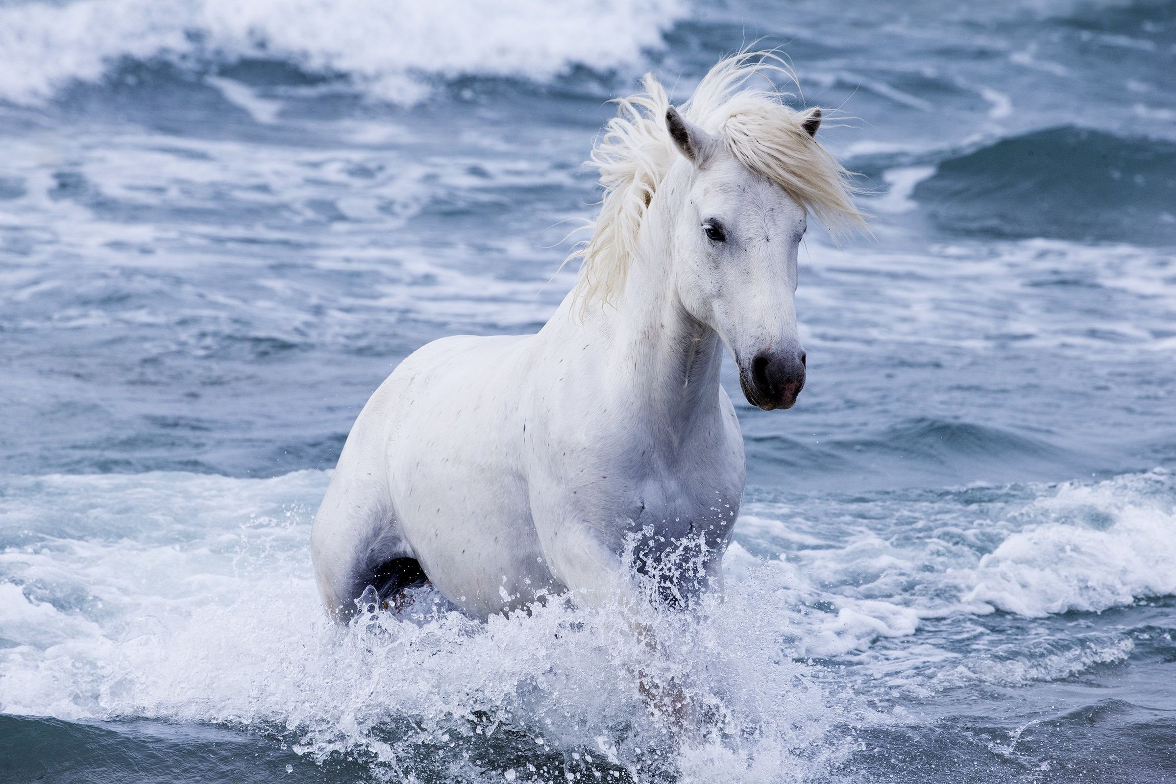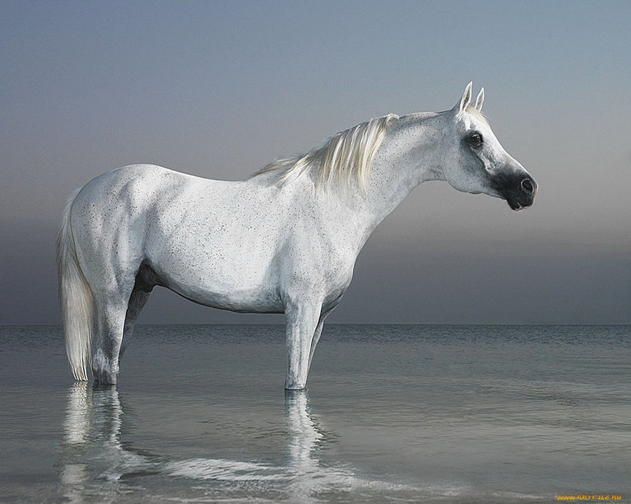 Белая лошадь в океане