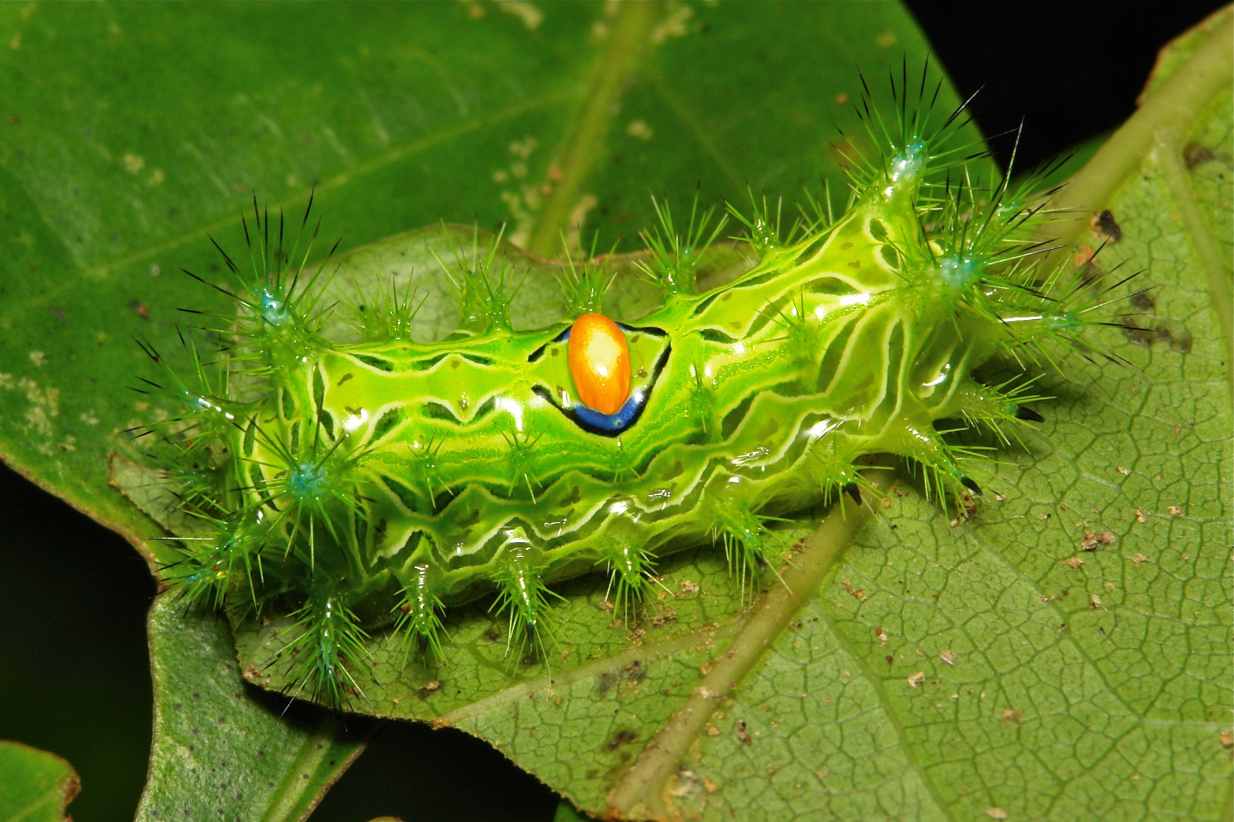 Гусеница павлиноглазки ядовитая