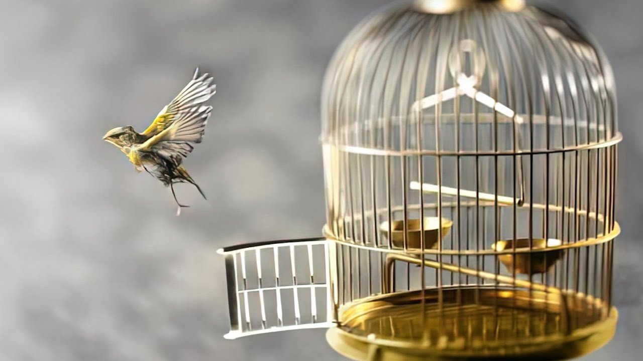 Птица вылетает из клетки