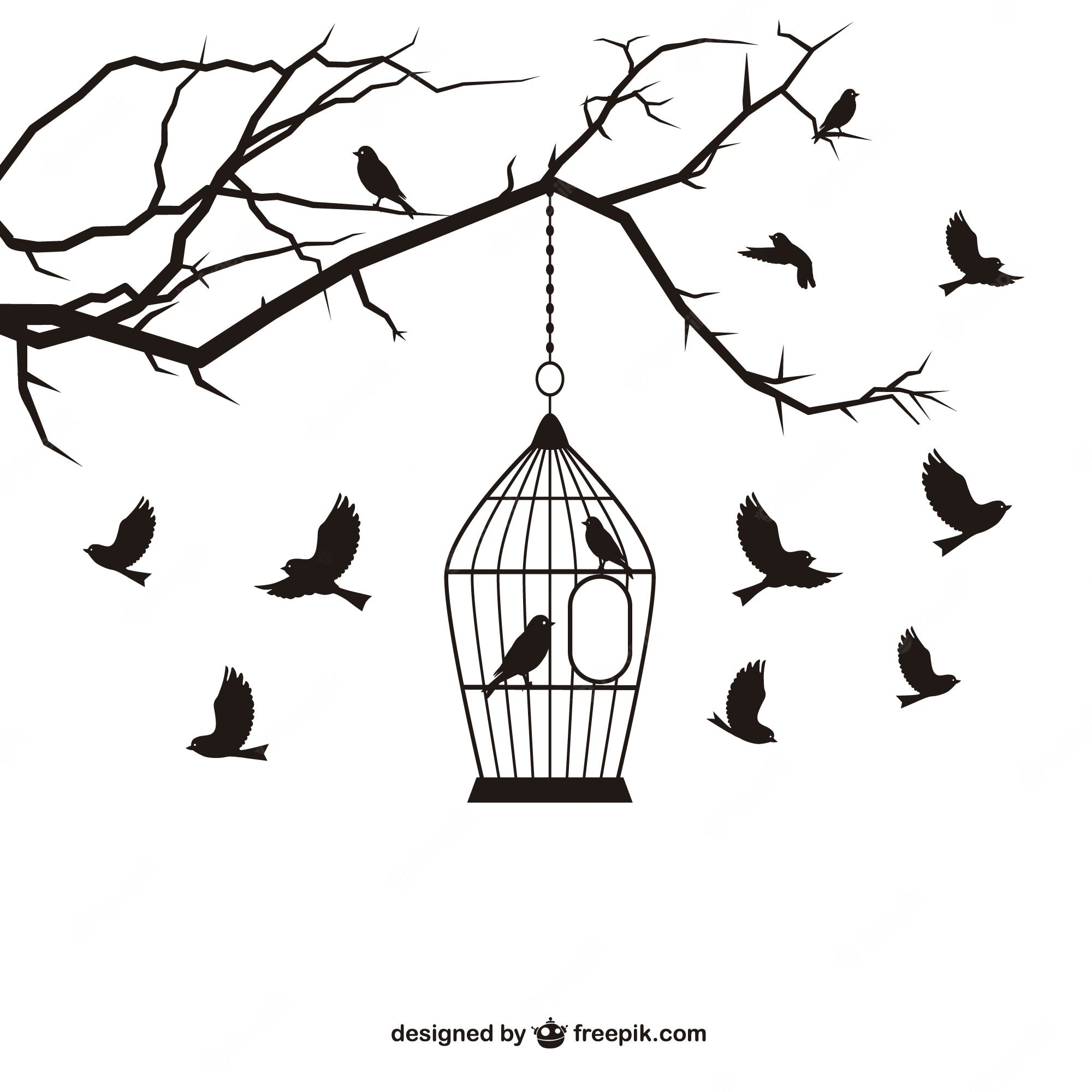 Птица вылетает из клетки силуэт