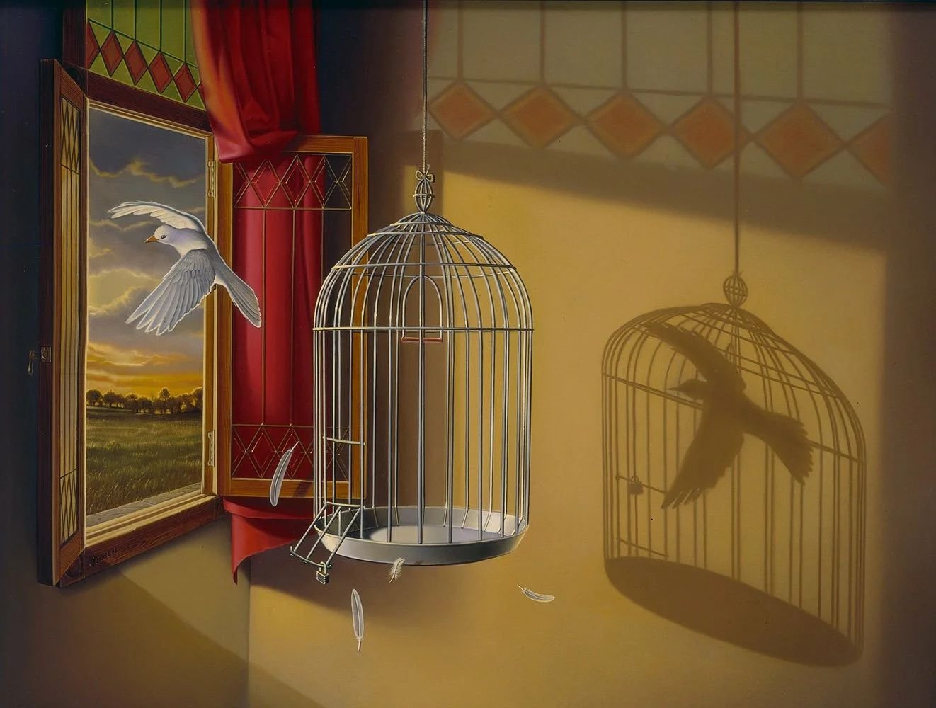 Птица в клетке картина