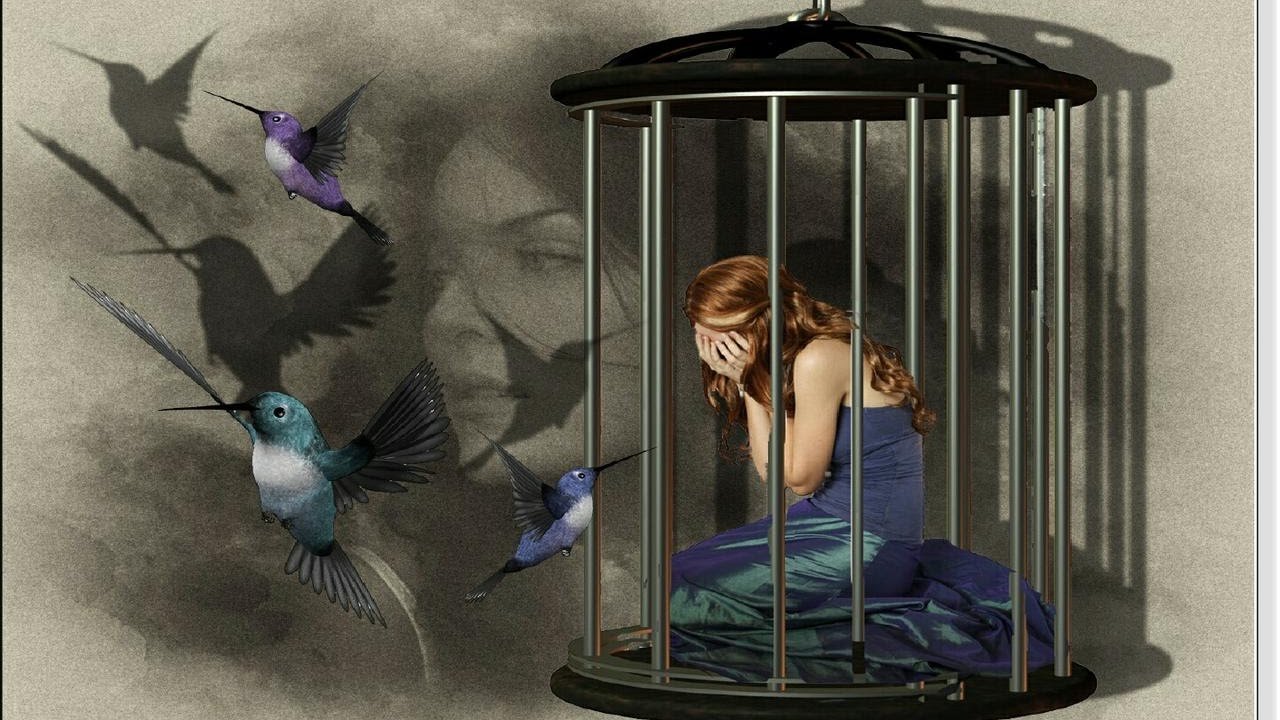 Человек в клетке птицы