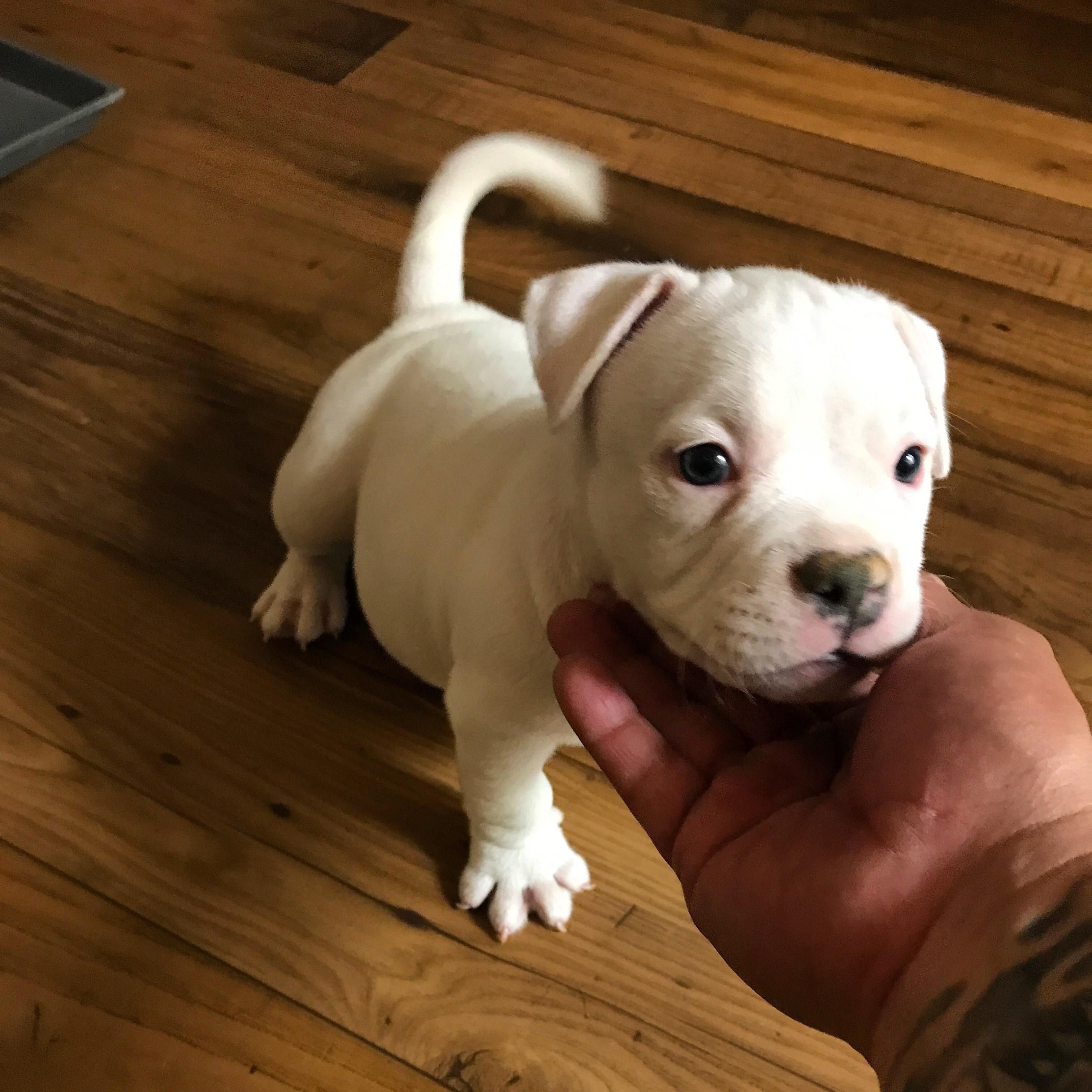 Американский питбультерьер белый щенок