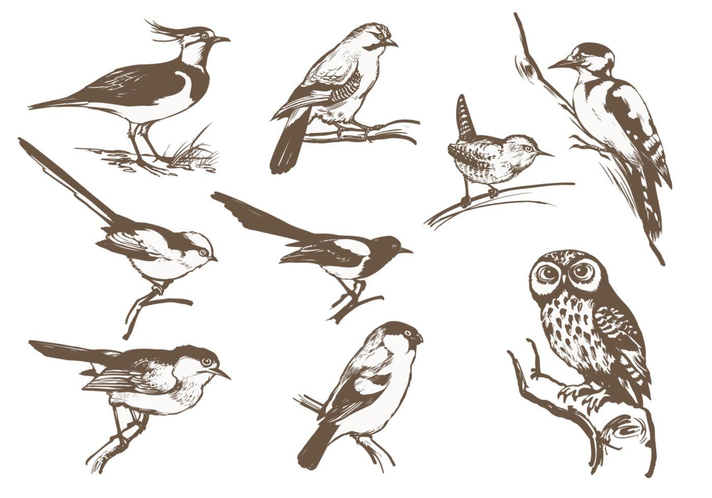 Наброски птиц в среде обитания