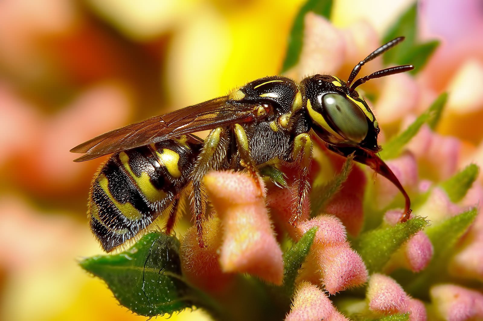 Шершень опыляет цветы