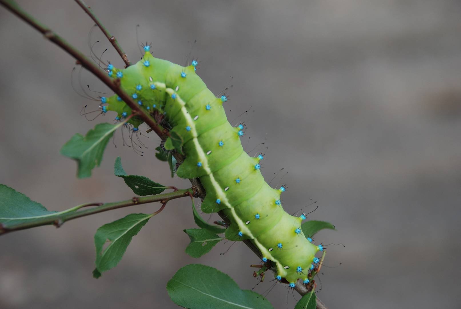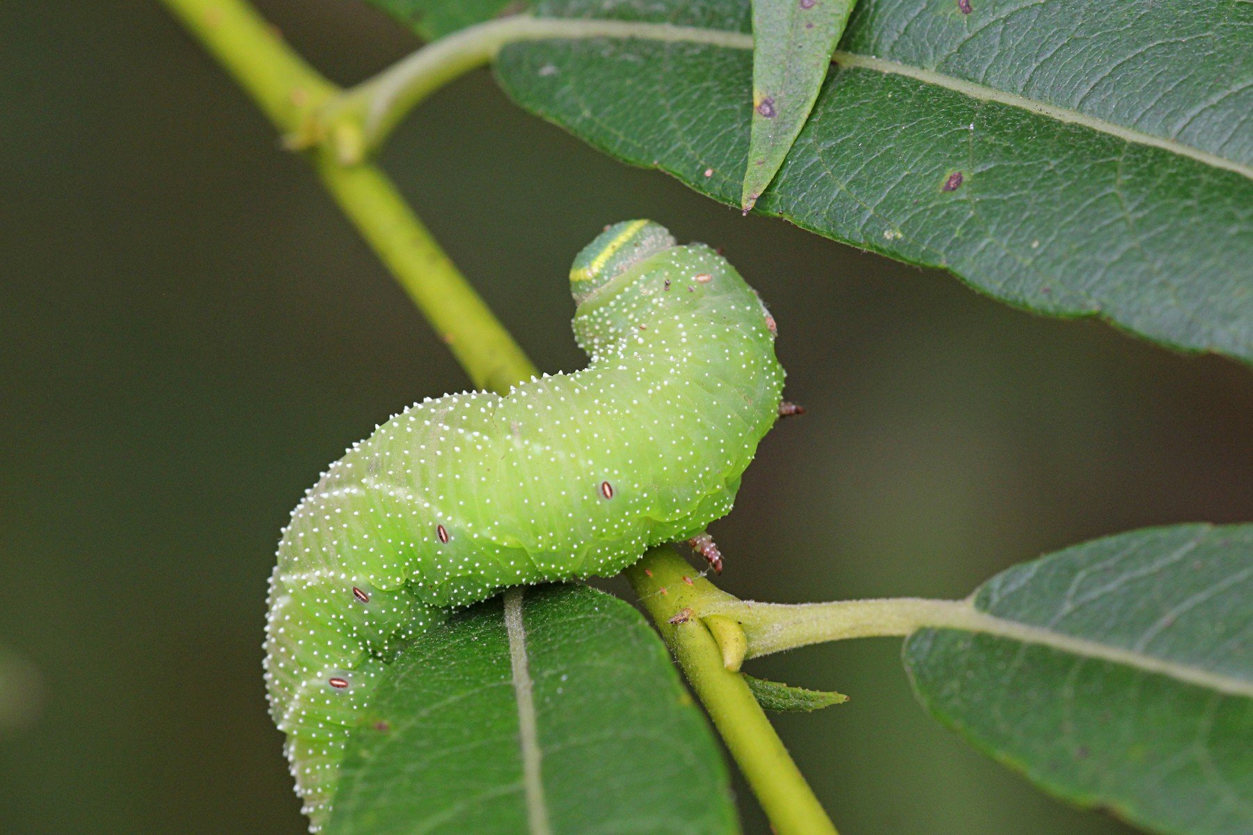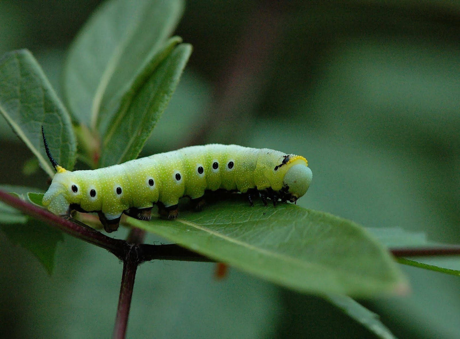 Зеленая гусеница павлиноглазки