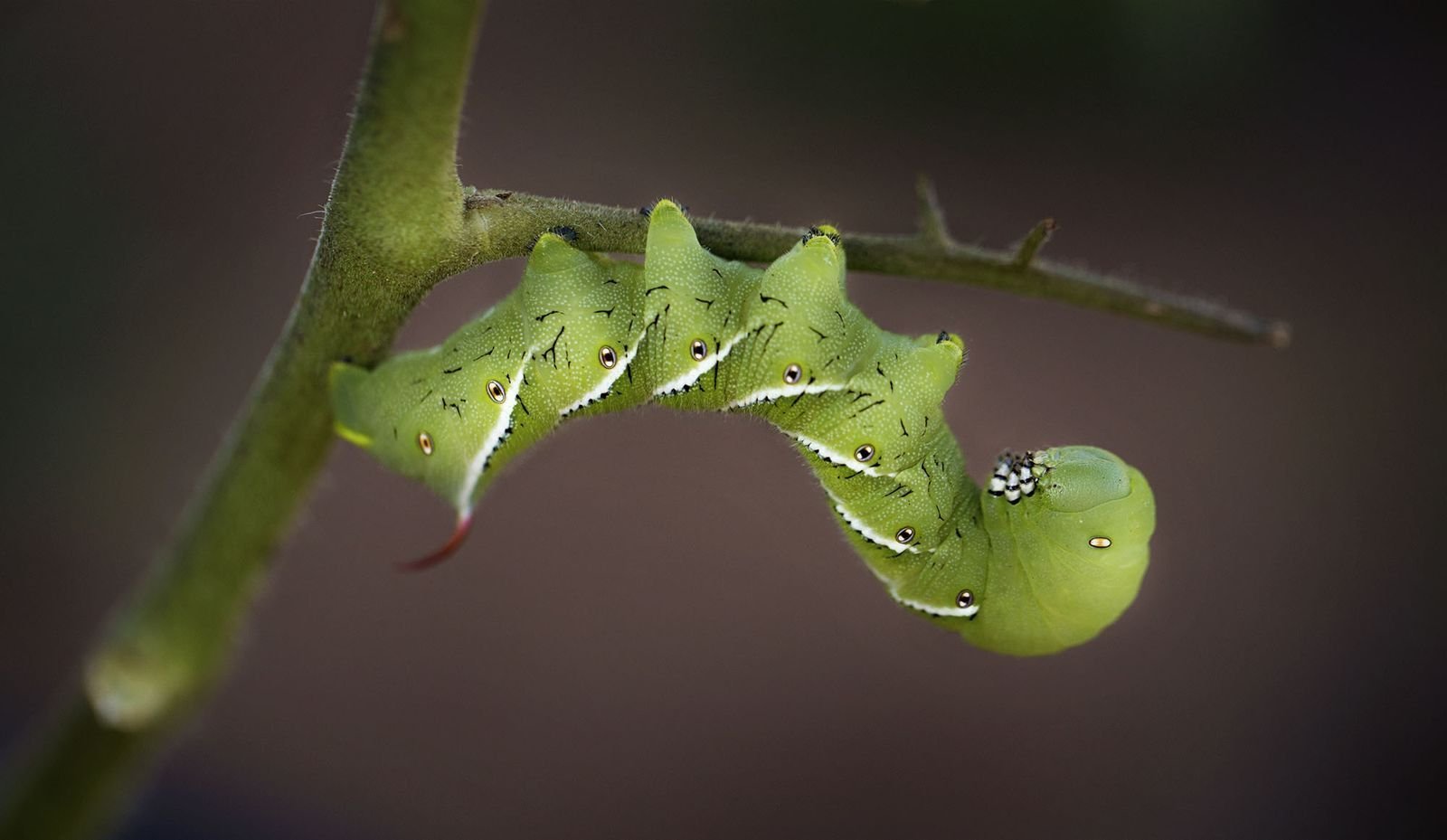 Зелёная гусеница с рогом