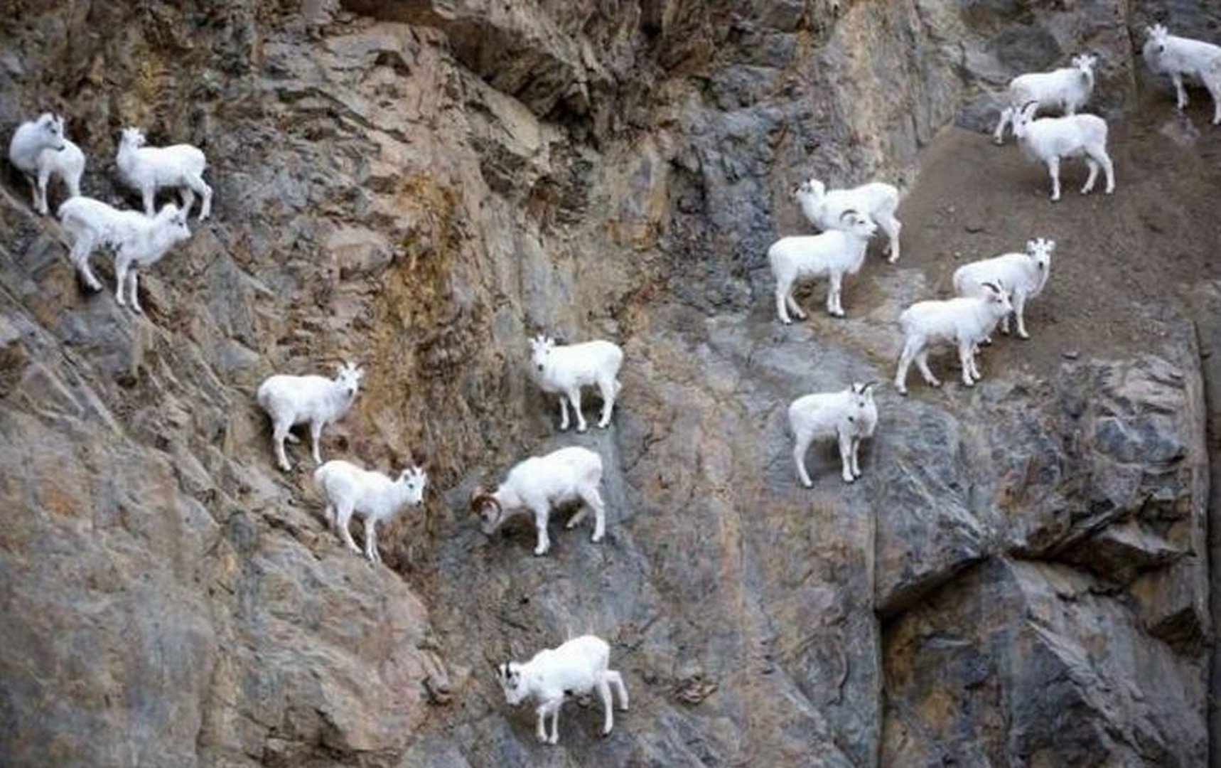 Горные козлы белые на скалах