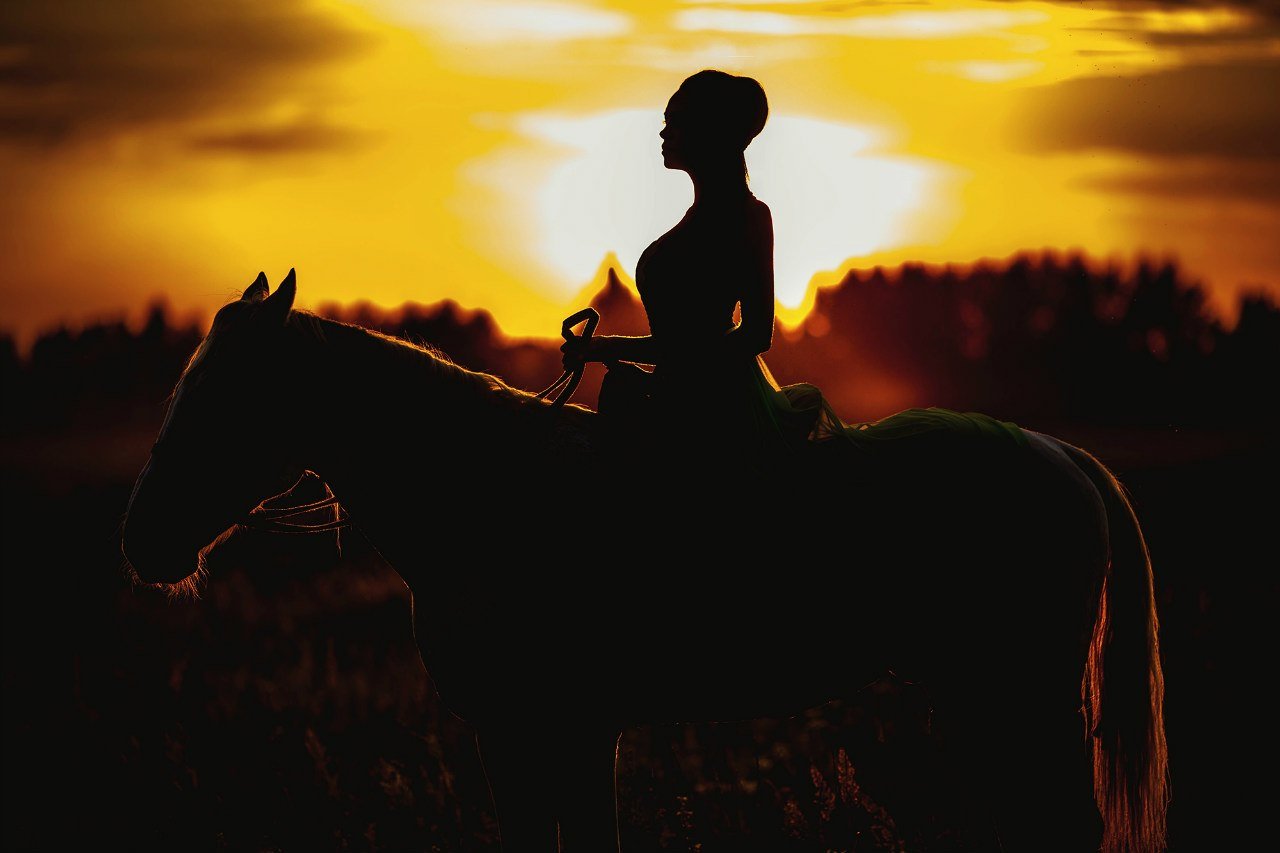 Девушка на лошади на закате