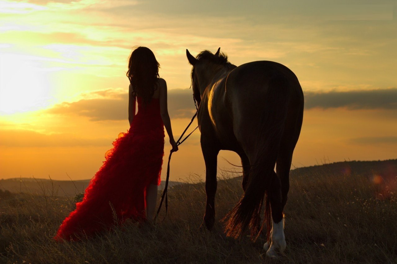 Девочка с лошадью на закате