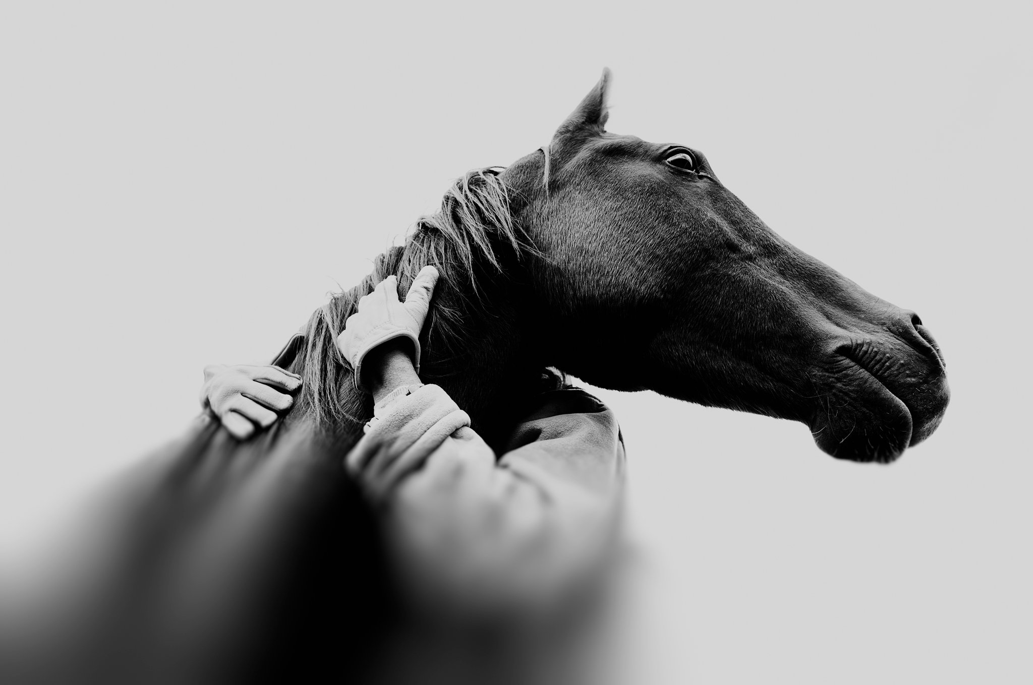 Фотосессия с лошадью черно белая