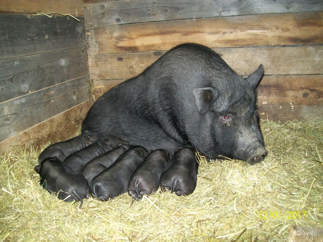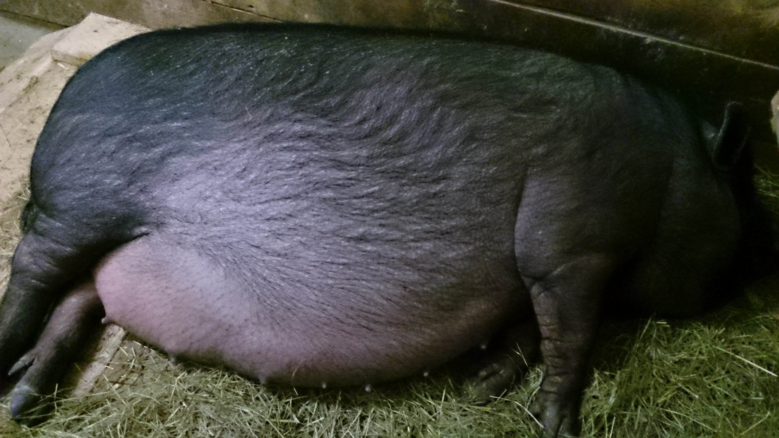 Черная вислобрюхая свинья