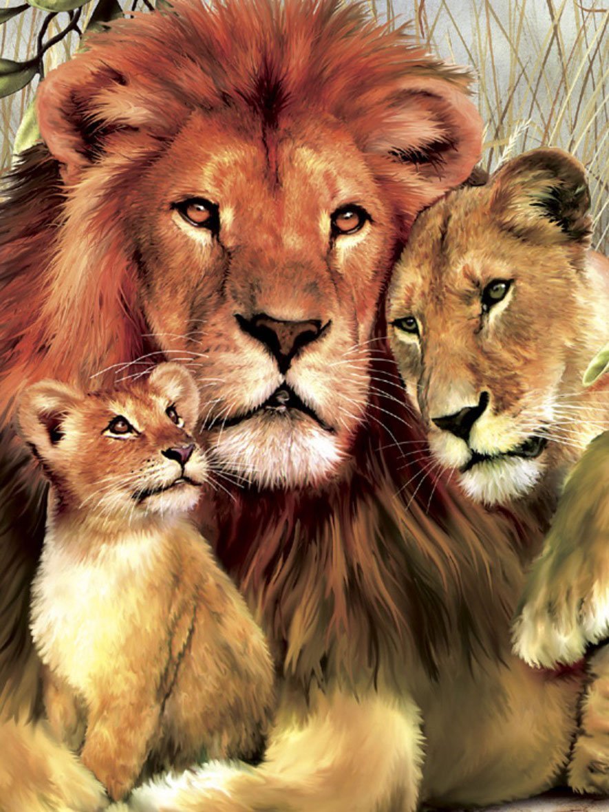 Алмазная мозаика львиная семья
