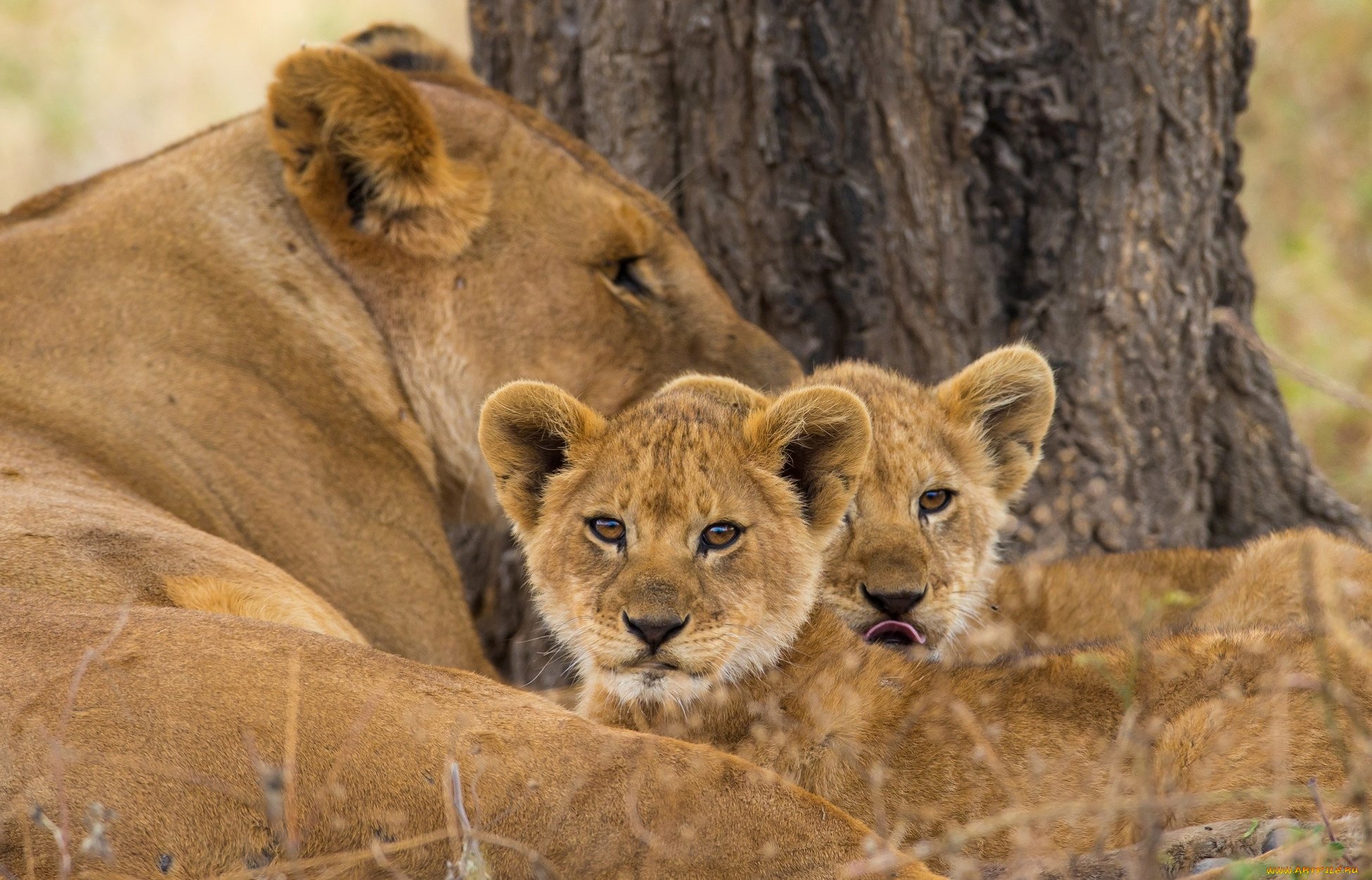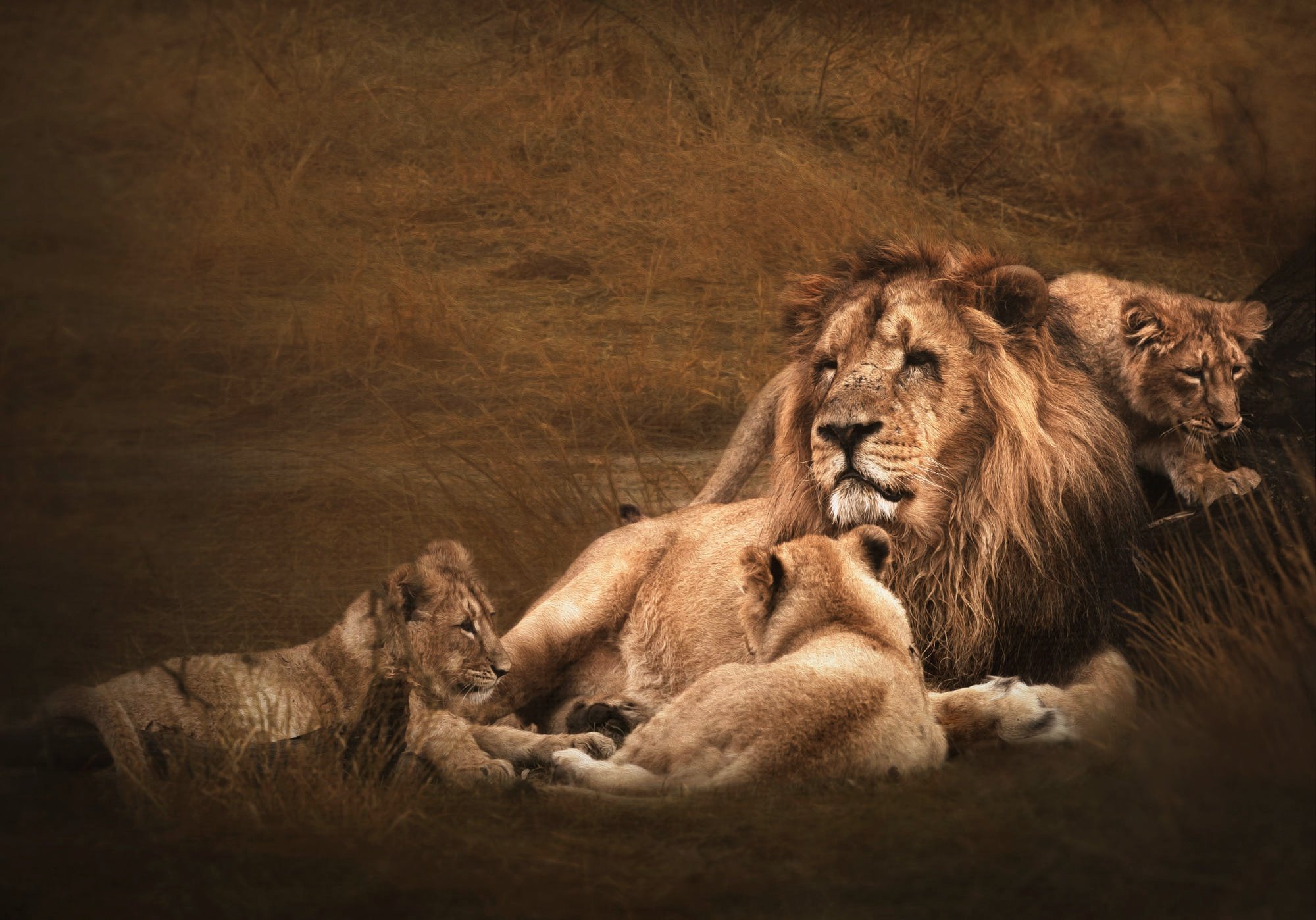 Обои львиная семья