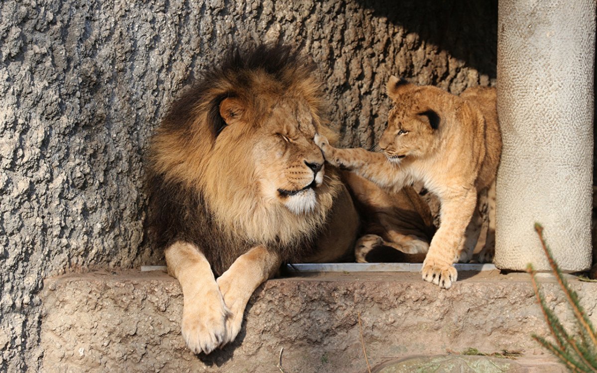 Лев с детенышем фото