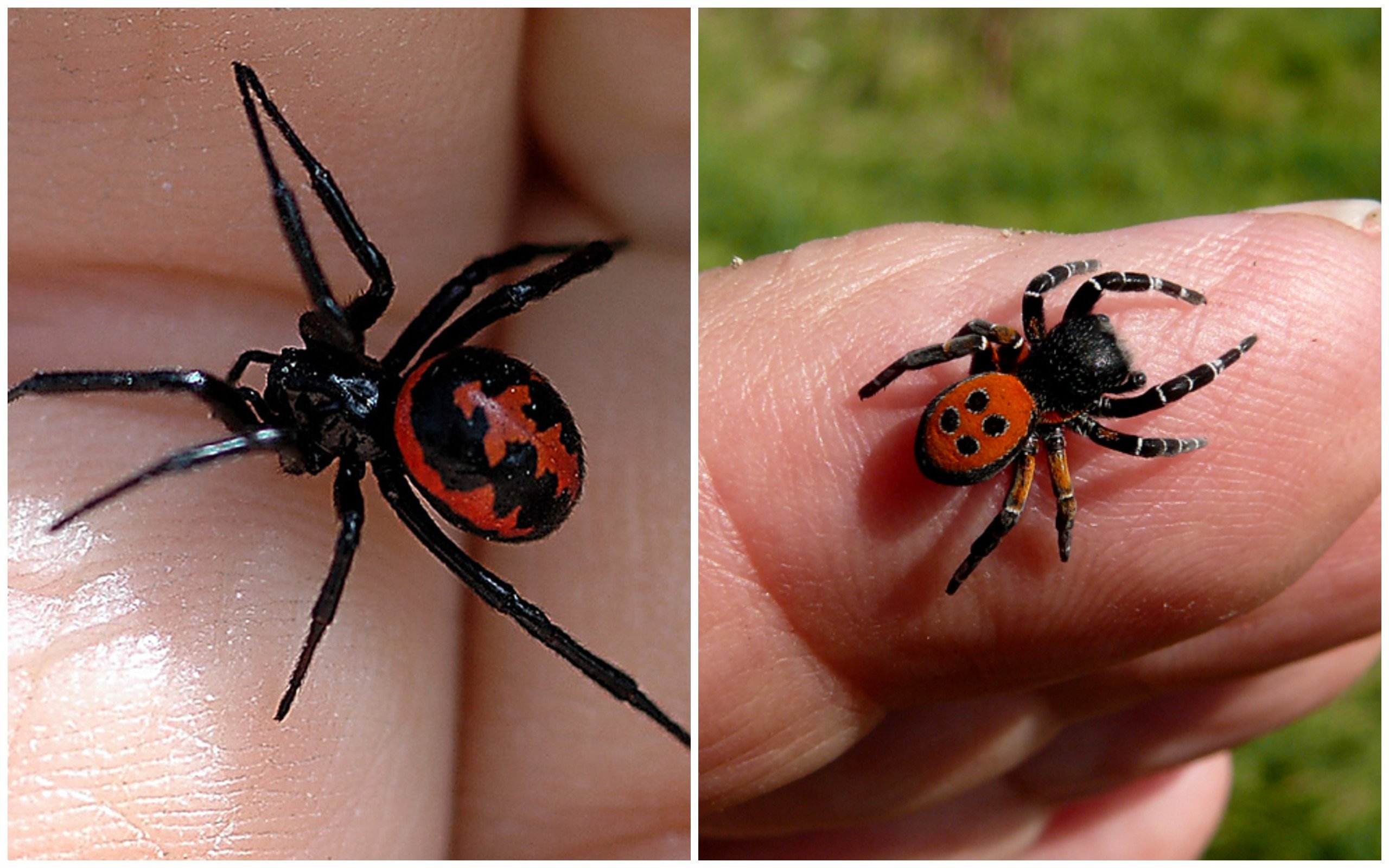 Черный паук с красными лапами