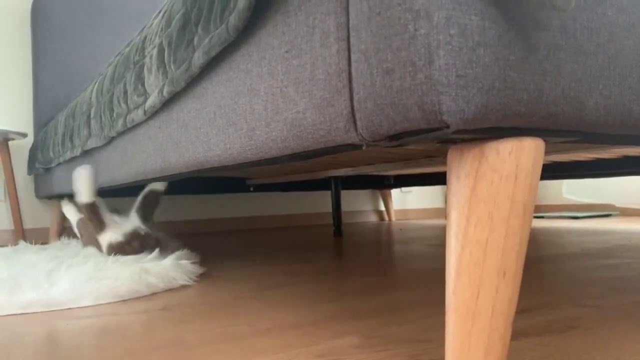 Кот спрятался за ножкой стола
